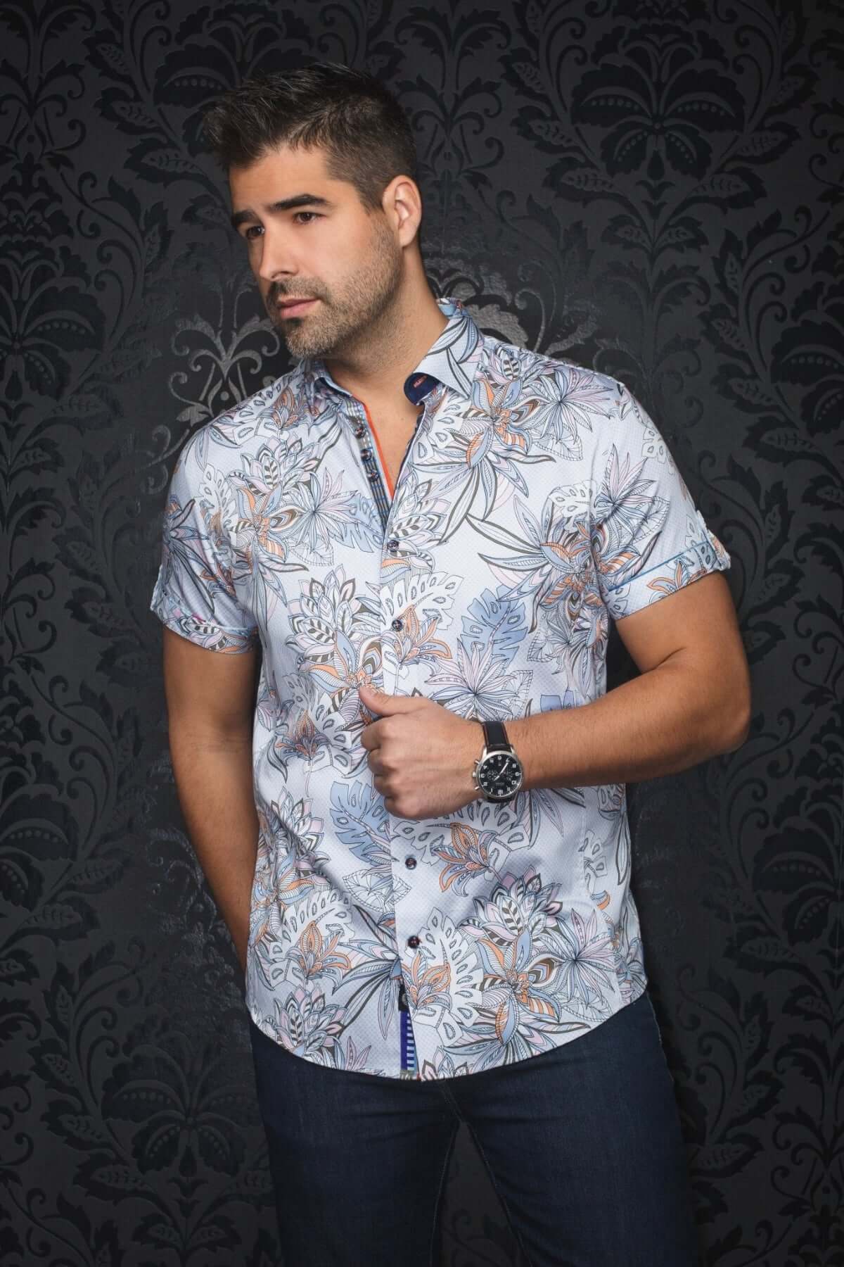 Description: Cette chemise à manches courtes au motif floral affirmé allie fraîcheur estivale et élégance contemporaine. Sa coupe ajustée et ses détails contrastants apportent une touche de raffinement, idéale pour se démarquer avec style lors des beaux jours.