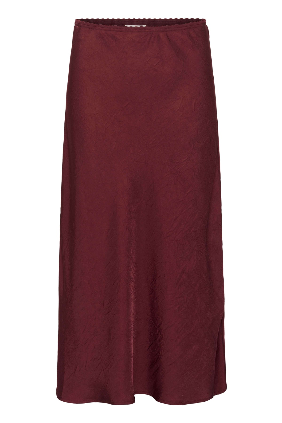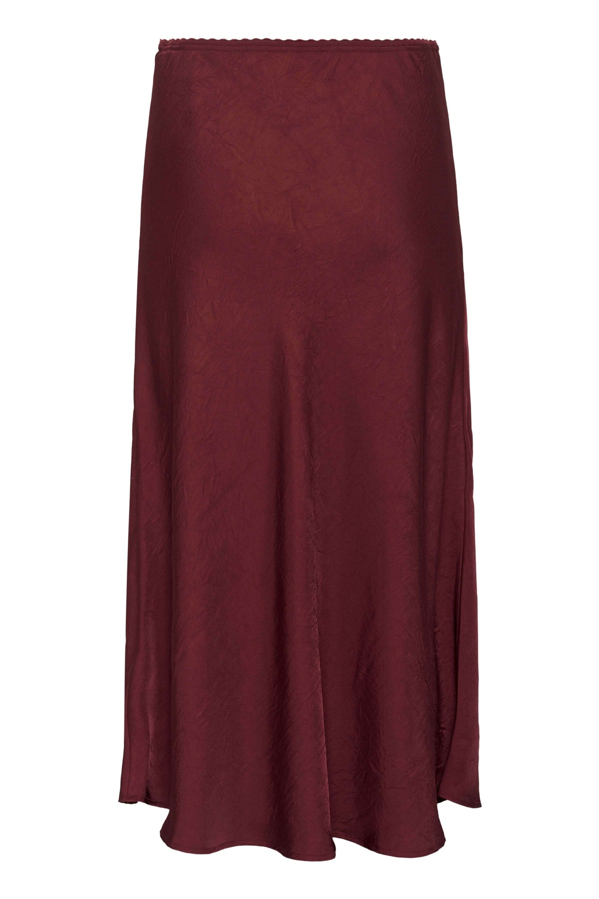 Jupe midi fluide bordeaux, coupe évasée et élégante, idéale pour le bureau ou les sorties.