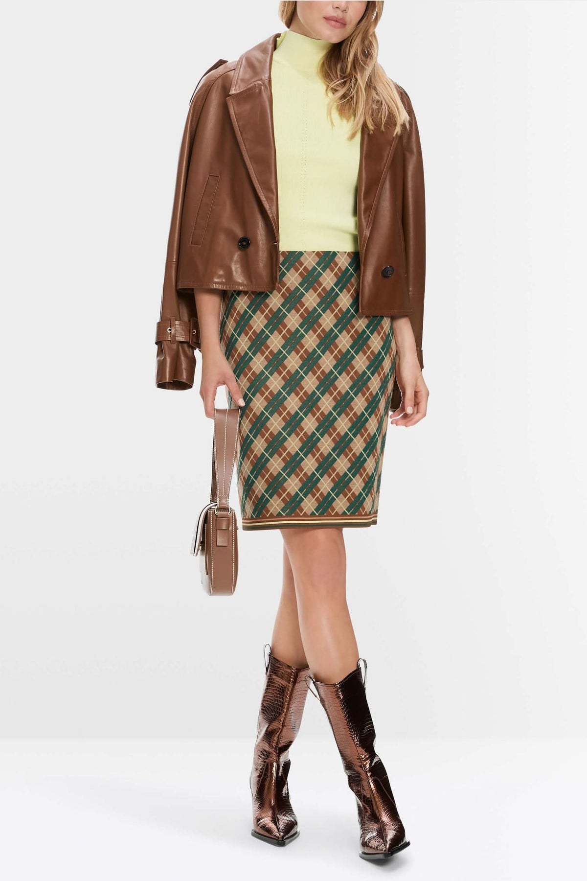 Description: Cette mini-jupe moulante à carreaux argyle dégage une touche écossaise. Les rayures à l'ourlet créent une finition assortie. La ceinture élastiquée assure le confort. Le modèle est tricoté en Allemagne à partir de laine, de coton et de viscose : les fils sont tricotés sur des machines à tricoter ultramodernes et les tissus sont finis en Allemagne. Les différentes parties telles que les manches, le devant, etc. sont cousues ensemble dans des entreprises partenaires européennes.