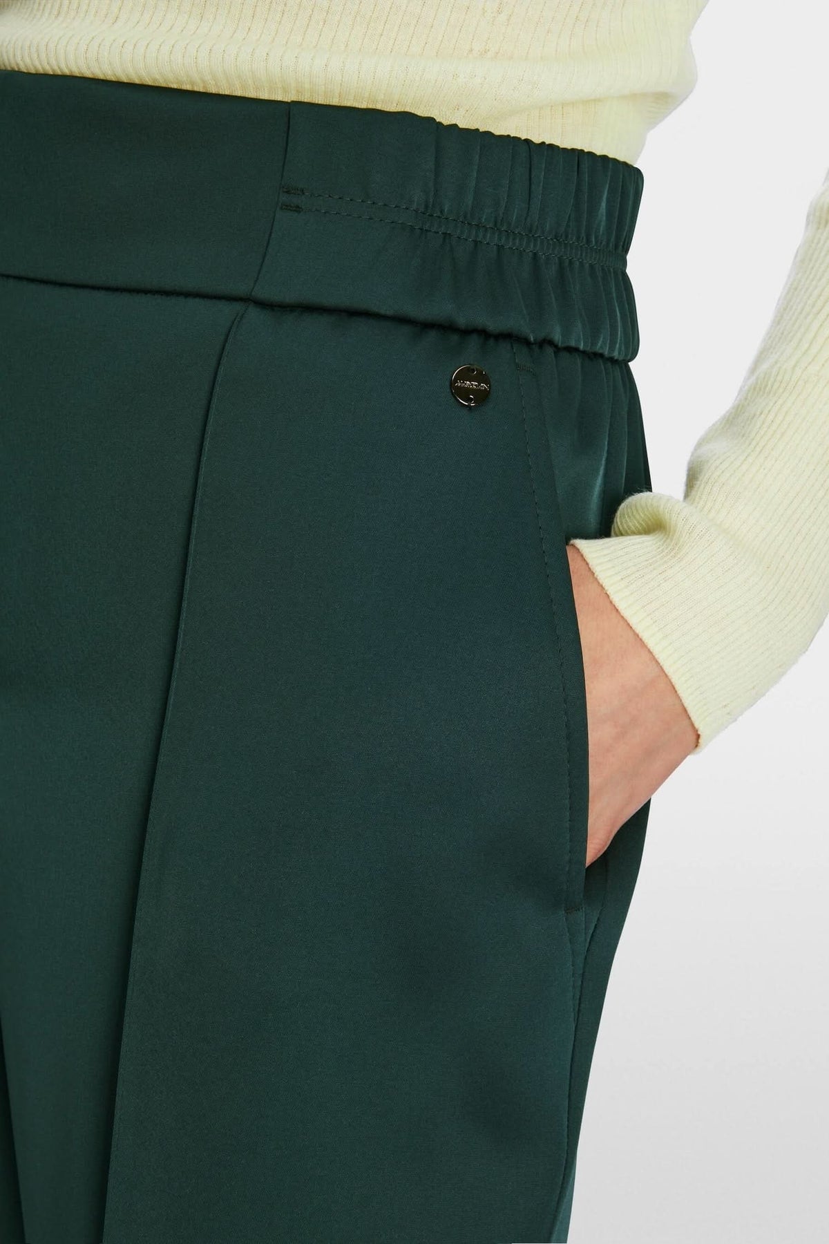 Pantalon à jambe large WASHINGTON en vert, ceinture élastiquée et poches, longueur de jambe 34".