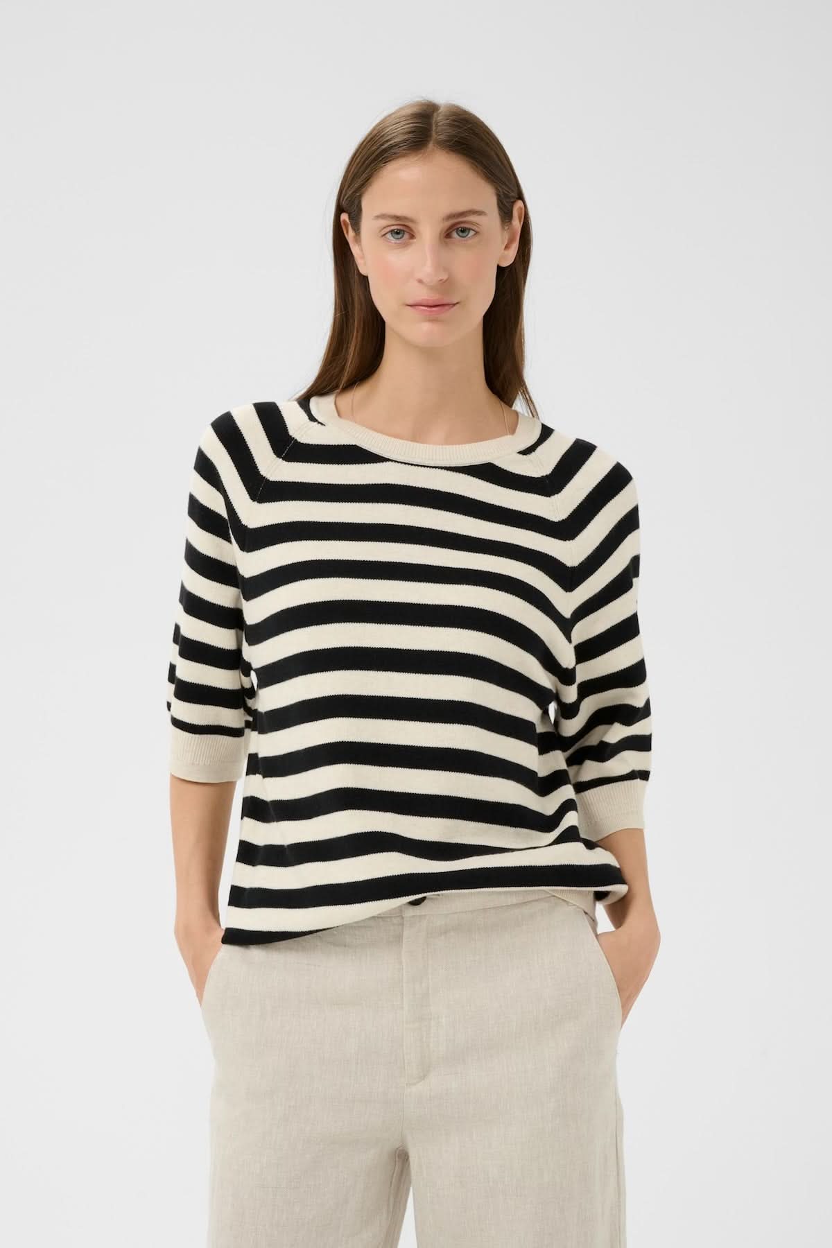 Ce chandail rayé en tricot fin propose une silhouette décontractée et intemporelle, idéale pour un style à la fois simple et soigné. Son motif à rayures apporte un contraste graphique élégant, tandis que sa coupe droite assure un confort optimal au quotidien. Facile à porter, il se marie aussi bien avec un pantalon structuré qu’avec un denim.