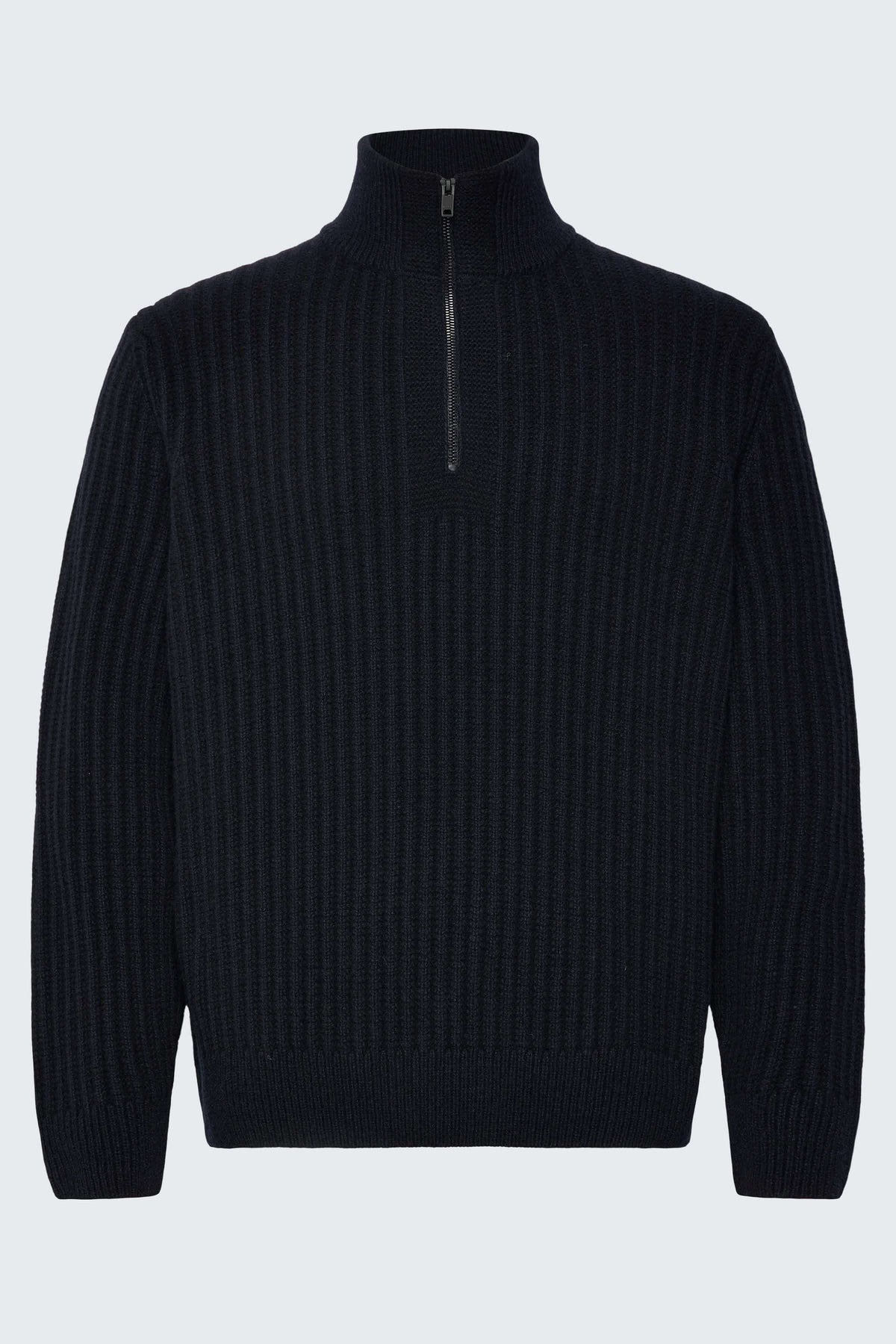 Description : Ce chandail en tricot côtelé à demi-glissière allie style et chaleur dans un design classique. Son col montant zippé offre une touche moderne et modulable, parfaite pour superposer sur une chemise ou le porter seul. Idéal pour un look décontracté mais soigné.