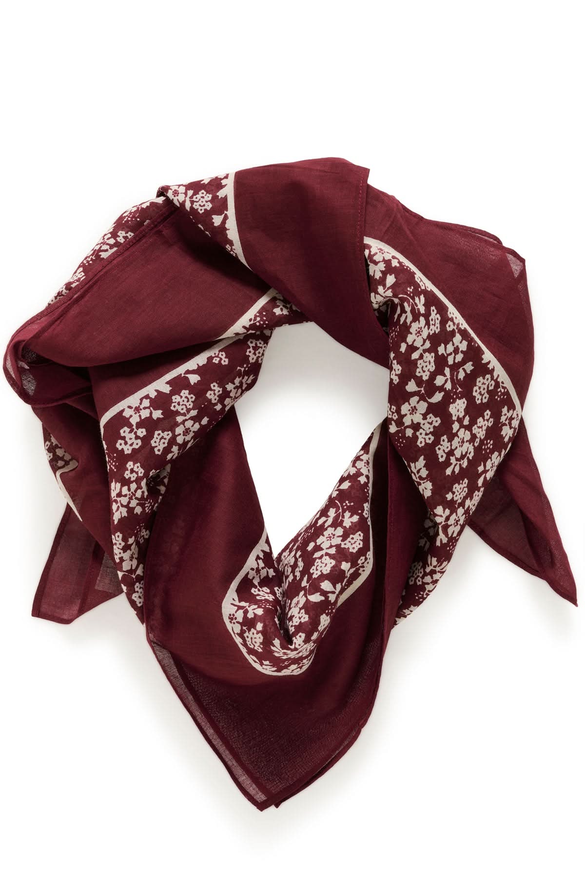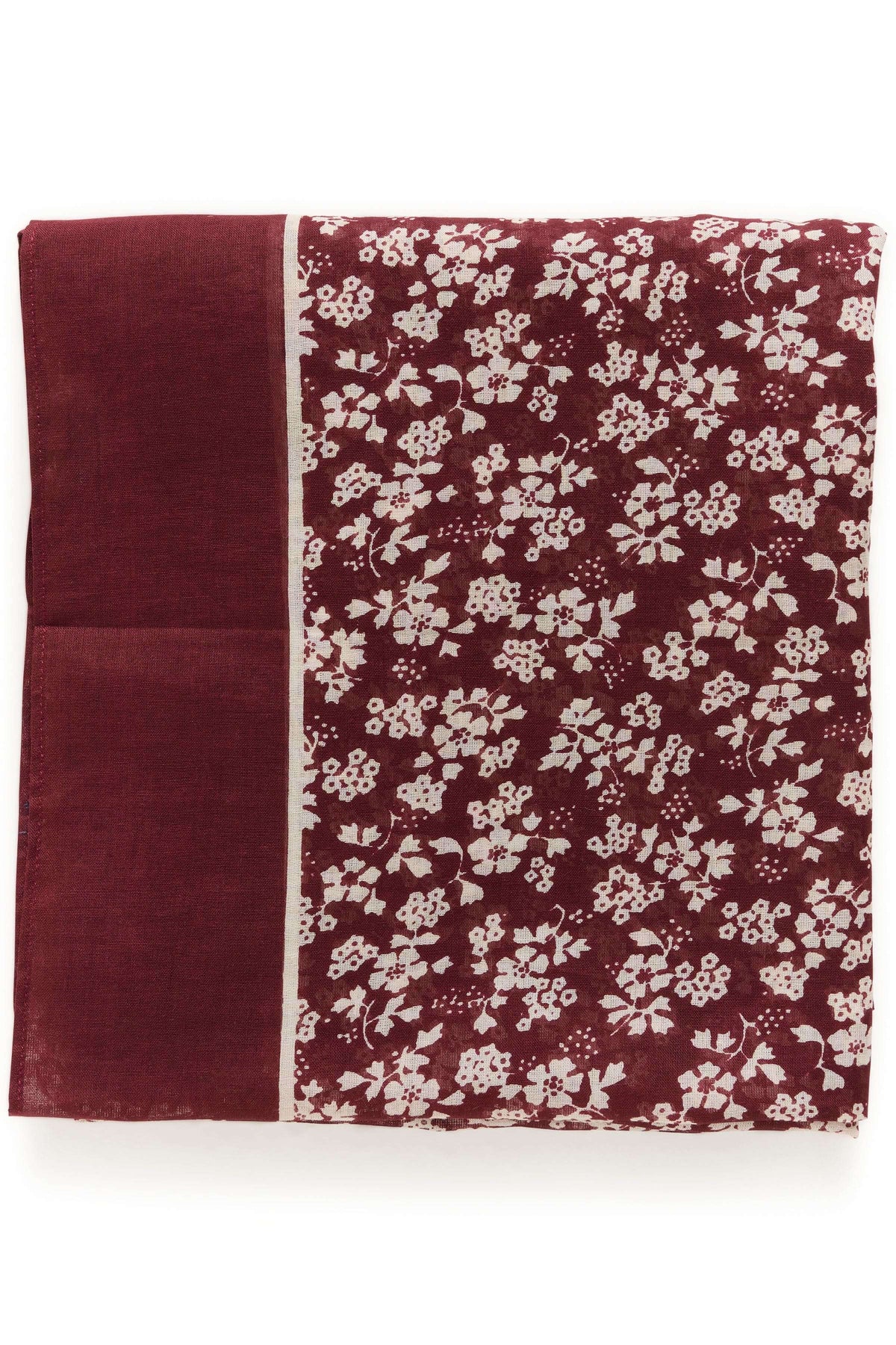 Description : Ce foulard carré se distingue par son imprimé floral délicat et ses tons profonds de bordeaux, rehaussés d’une bordure contrastante. Léger et fluide, il apporte une touche sophistiquée à toutes vos tenues, que ce soit autour du cou, dans les cheveux ou attaché à un sac.