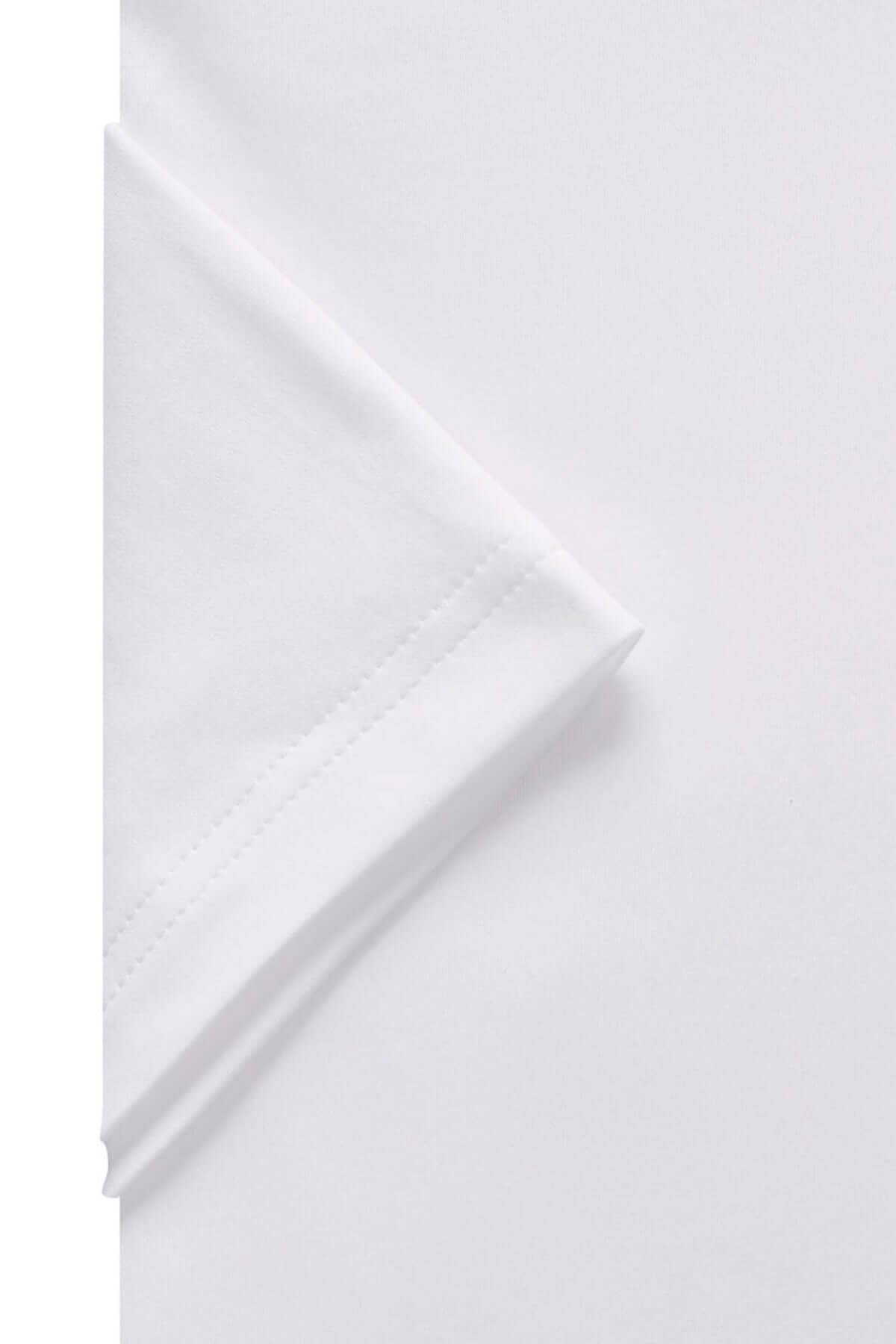 T-shirt blanc moderne avec encolure ronde et finition soignée, essentiel pour un look décontracté.