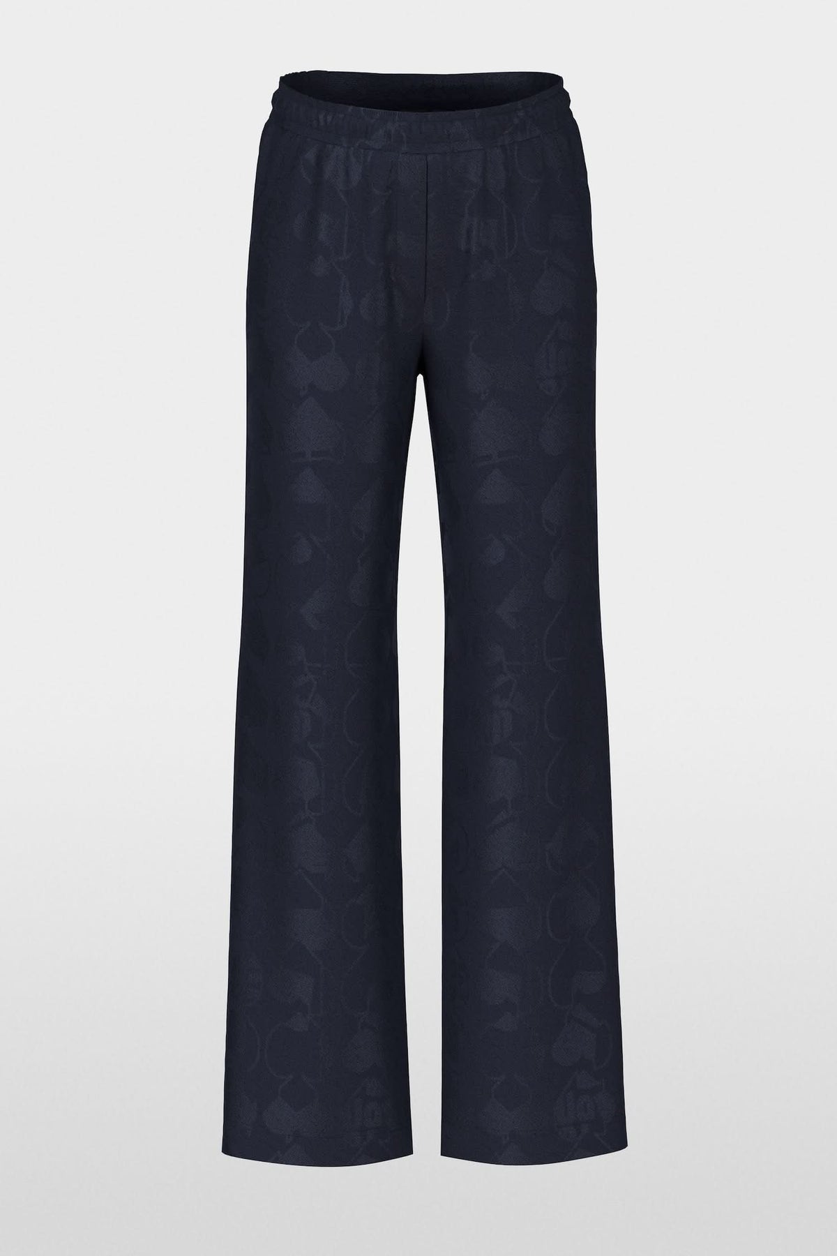 Description: Élégance au quotidien : le modèle WASHINGTON est un pantalon à enfiler large en tissu fluide et doux. Il a une taille flexible et une jambe droite. Le motif allover basé sur un contraste mat/brillant est du plus bel effet.