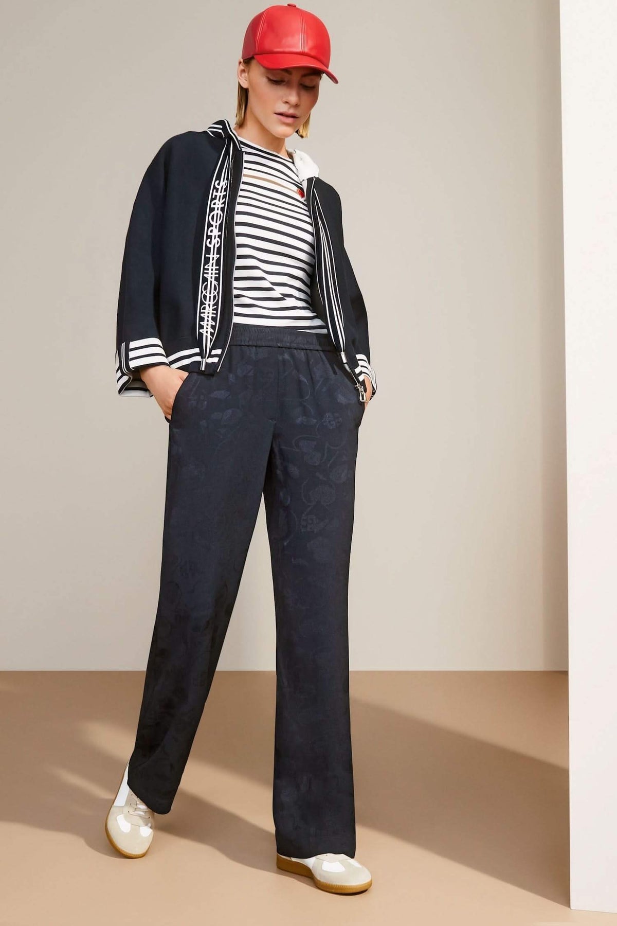 Pantalon à enfiler WASHINGTON en tissu fluide, taille élastiquée, coupe ample, modèle chic avec motif contraste.