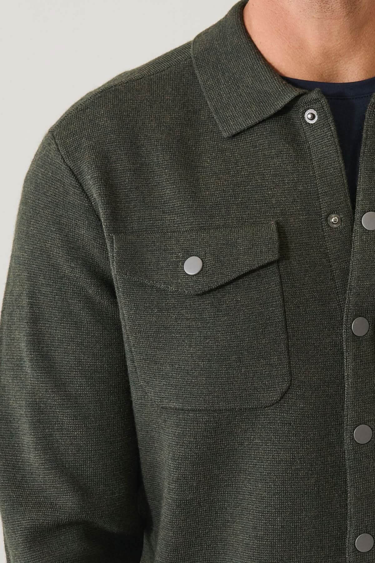 Description: Cette surchemise à boutons-pression est confectionnée en laine mérinos extra-fine, tricotée en point Half-Milano pour une texture riche et élégante. Douce et raffinée, elle allie confort et allure soignée, idéale pour un style polyvalent qui se porte aussi bien de façon décontractée qu’habillée. Une pièce essentielle pour la mi-saison et les superpositions modernes.