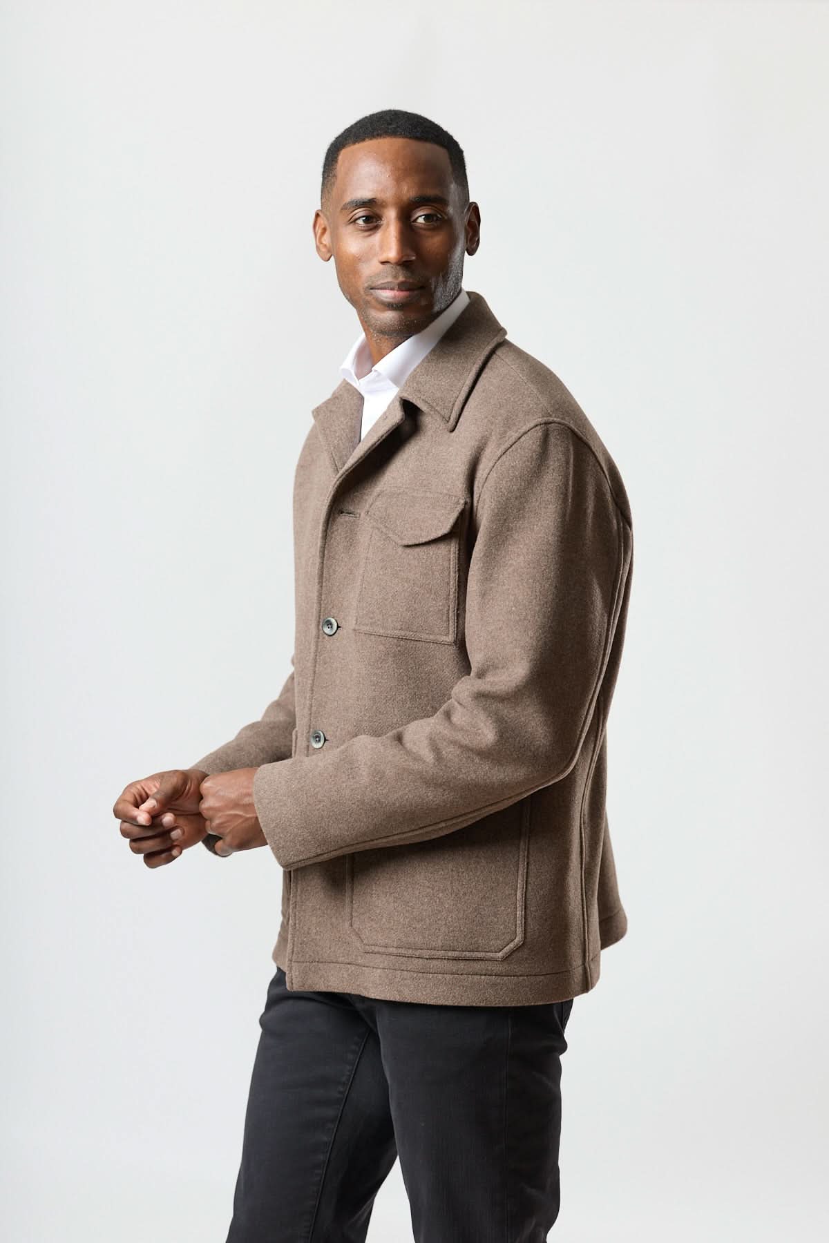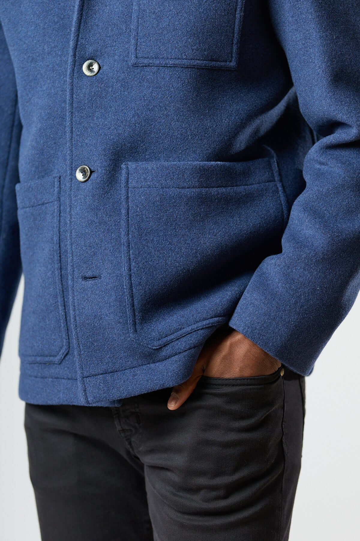 Description: Cette veste en pure laine présente une main douce et dense, idéale pour des superpositions propres et structurées. La coupe droite, les grandes poches plaquées et la patte de poitrine inspirée workwear offrent un style soigné du bureau au week-end. Conseil style: portez-la sur une chemise et un denim foncé pour un look net, ou avec un col roulé pour maximiser la chaleur sans volume.