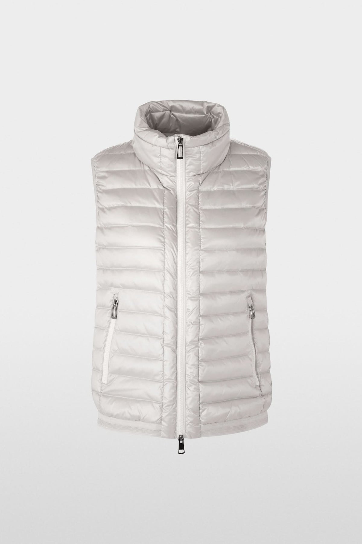 Veste matelassée sans manches en gris clair, offrant confort thermique et style moderne.