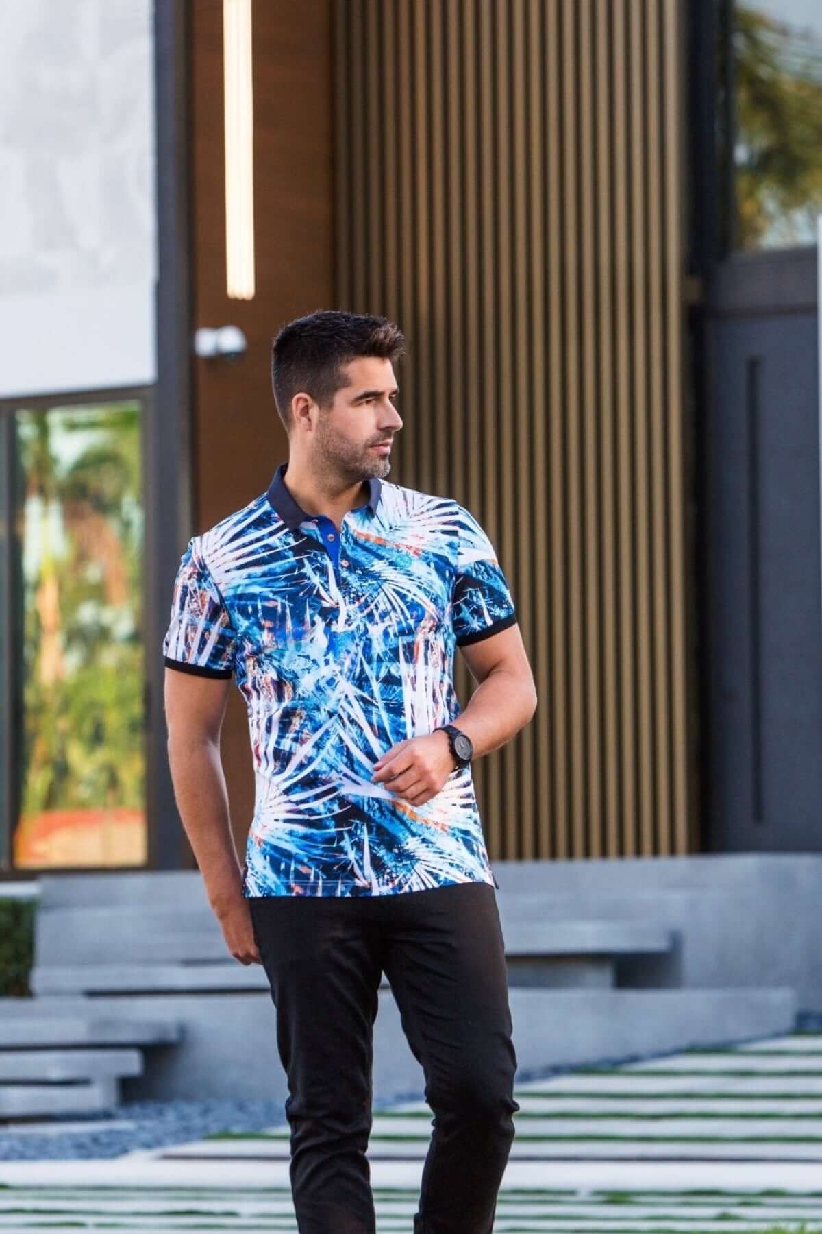 Description : Inspiré de la nature luxuriante, ce polo à manches courtes séduit par son imprimé feuillu audacieux et son col contrastant. Une pièce pleine d’énergie qui dynamise instantanément vos looks décontractés. Parfait pour les journées ensoleillées ou les escapades estivales.