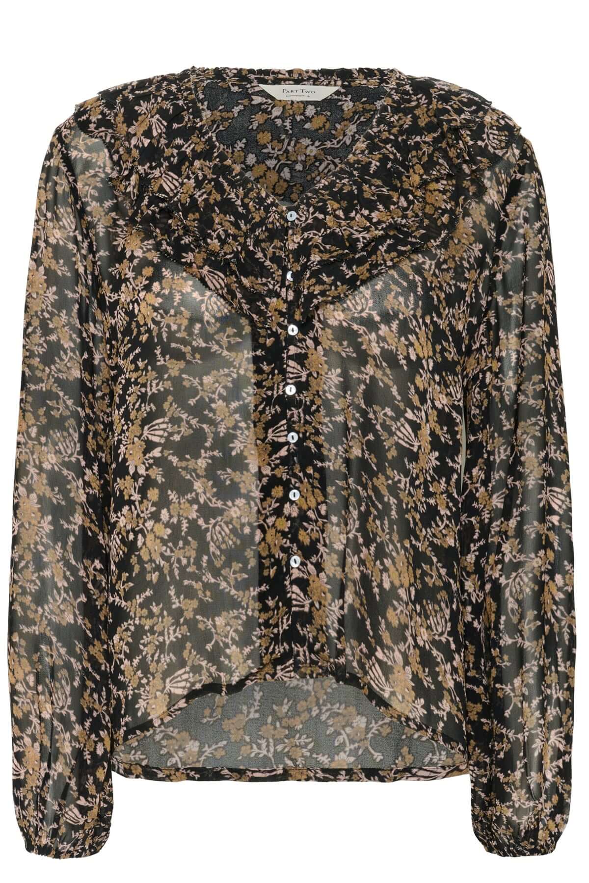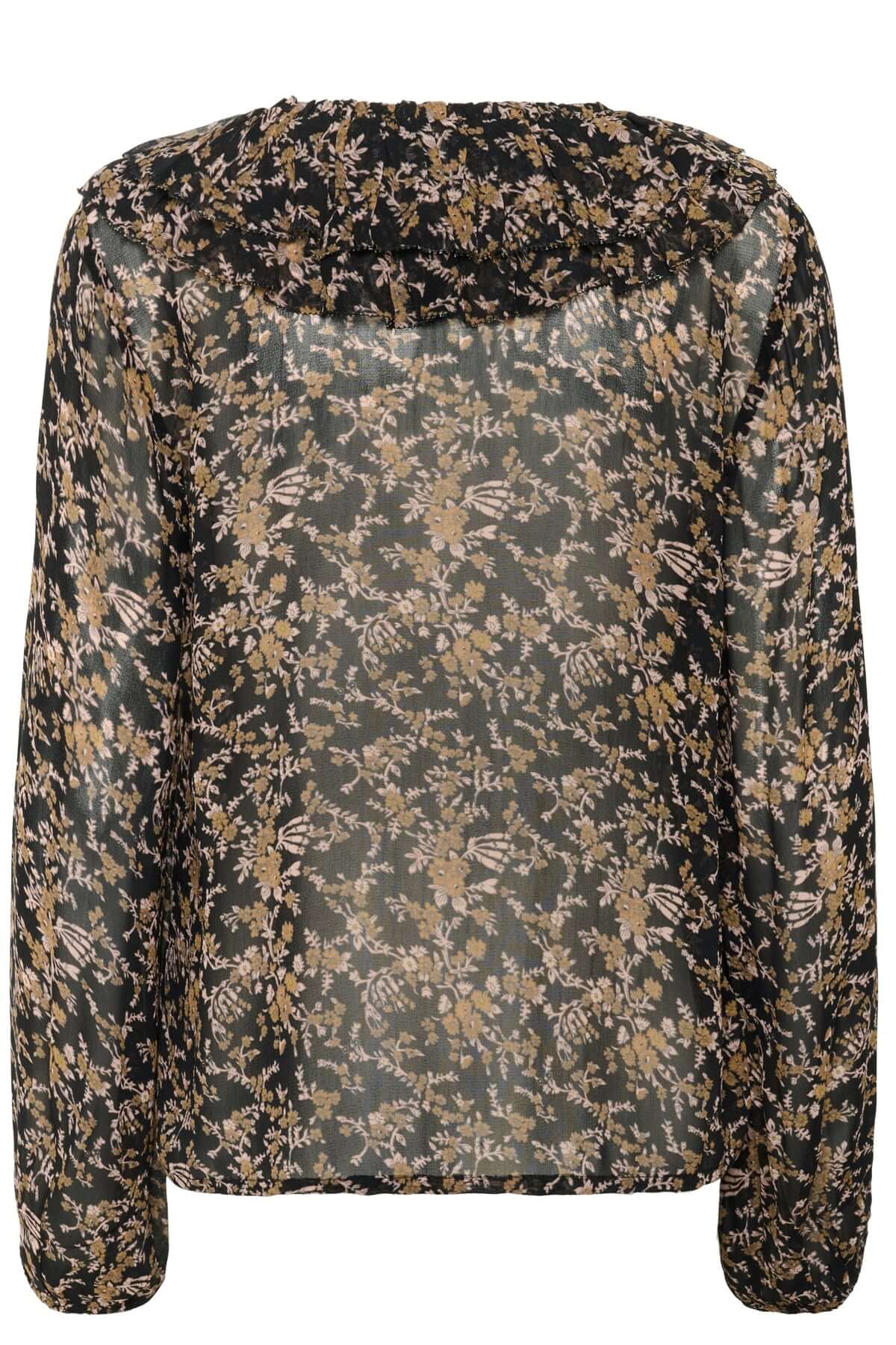Description: Cette blouse fluide séduit par son élégance romantique grâce à son col orné de volants délicats. Sa matière légère et transparente offre un tombé raffiné et féminin. Conseil style : portez-la rentrée dans un pantalon tailleur ou une jupe midi pour un look chic et sophistiqué.