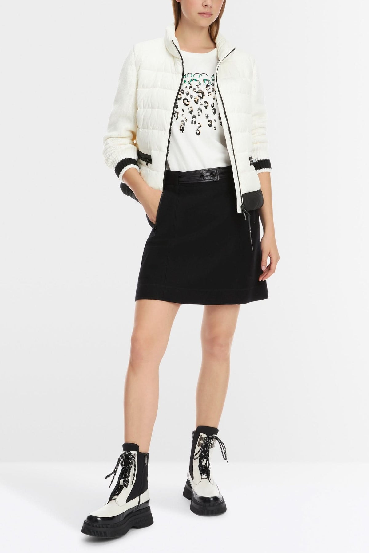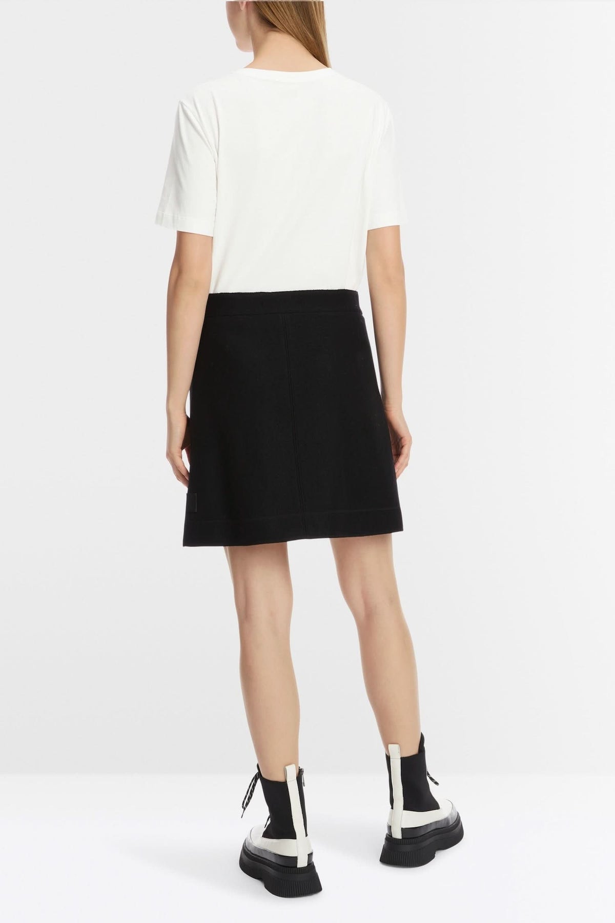 Description: La mini-jupe est légèrement évasée. Les empiècements en nylon brillant sur la taille boutonnable et élastique attirent les regards. En même temps, la jupe se distingue par son confort chaud et doux grâce à la laine vierge foulée. Le modèle est "Knitted in Germany": le tricotage des fils sur des machines à tricoter ultramodernes et l'ennoblissement des tissus ont lieu en Allemagne. Les différentes pièces comme les manches, la partie avant, etc. sont cousues en Europe.