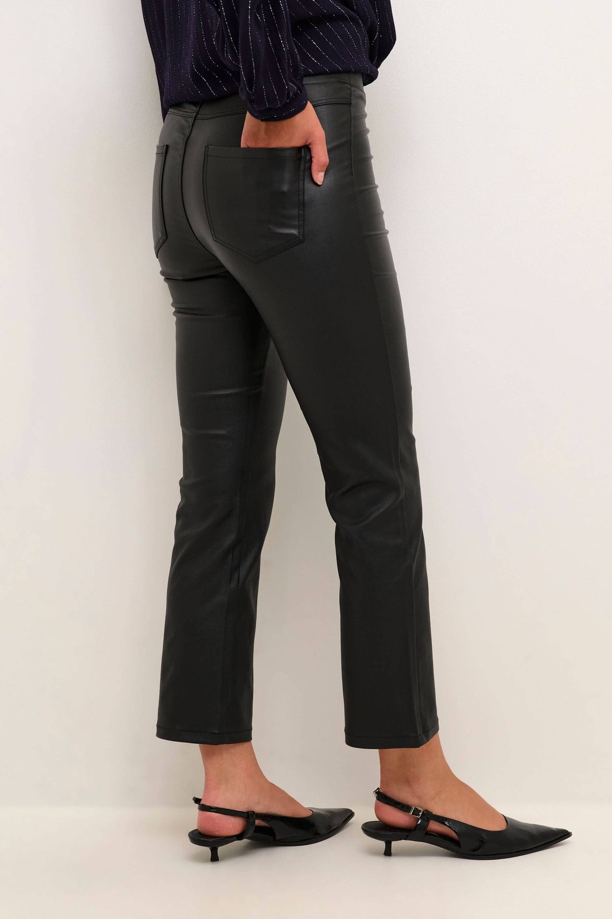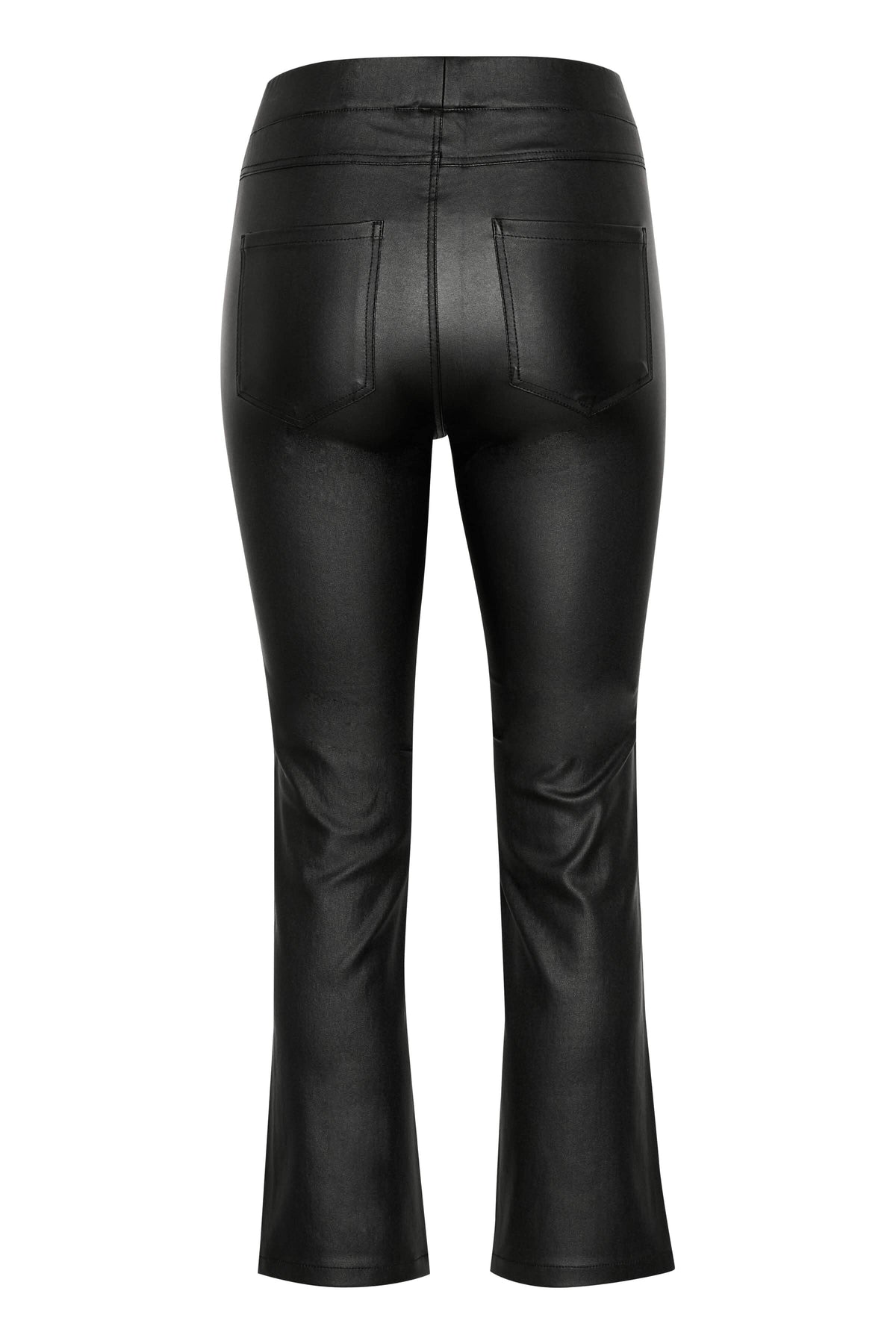 DESCRIPTION: Ce pantalon noir en simili cuir présente une coupe ajustée, s'arrêtant juste au-dessus de la cheville pour un look moderne et élégant. Sa texture lisse et son fini brillant ajoutent une touche de sophistication, idéale pour des tenues habillées ou décontractées. Associé à des chaussures à talons et un haut chic, il crée une silhouette raffinée et tendance.