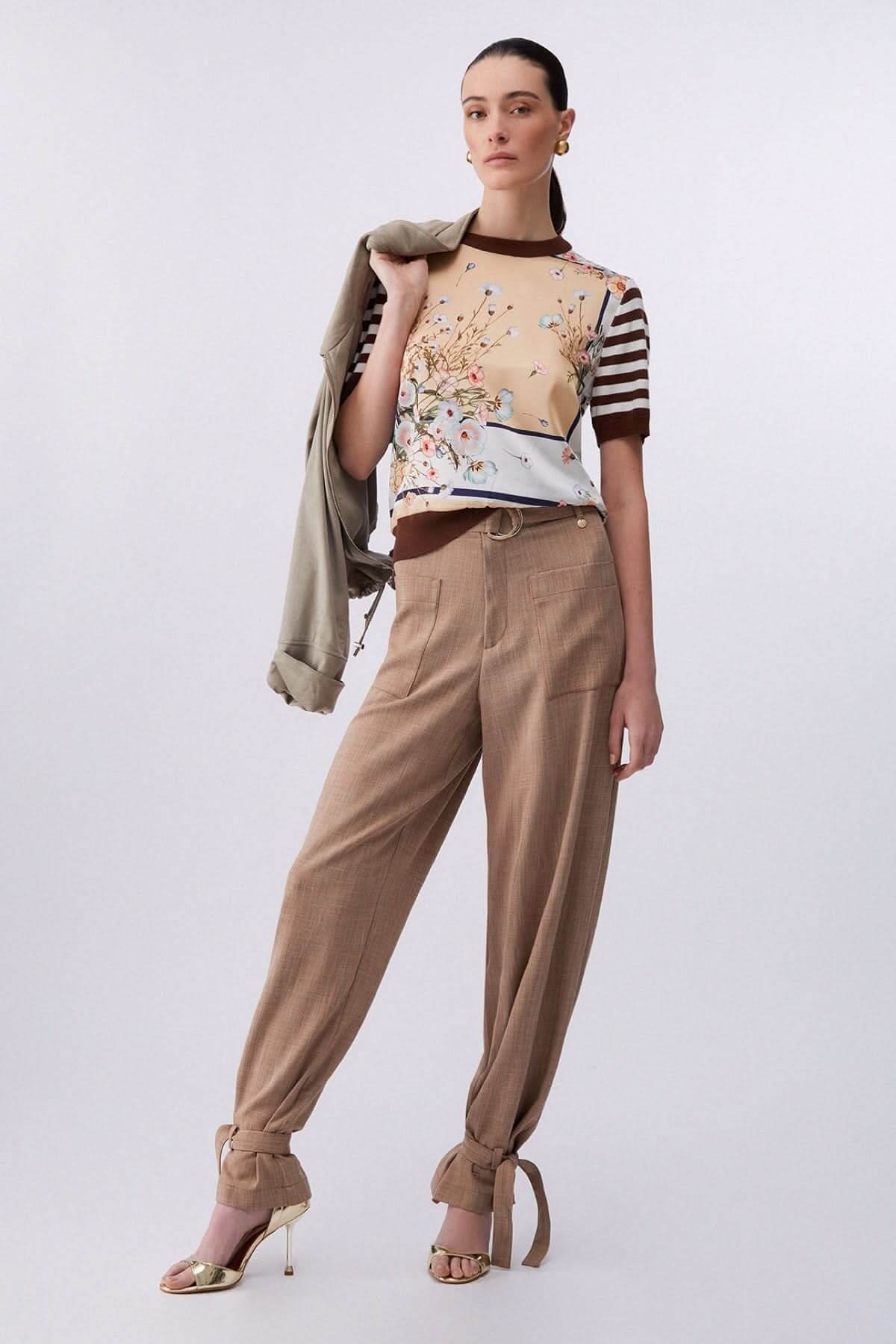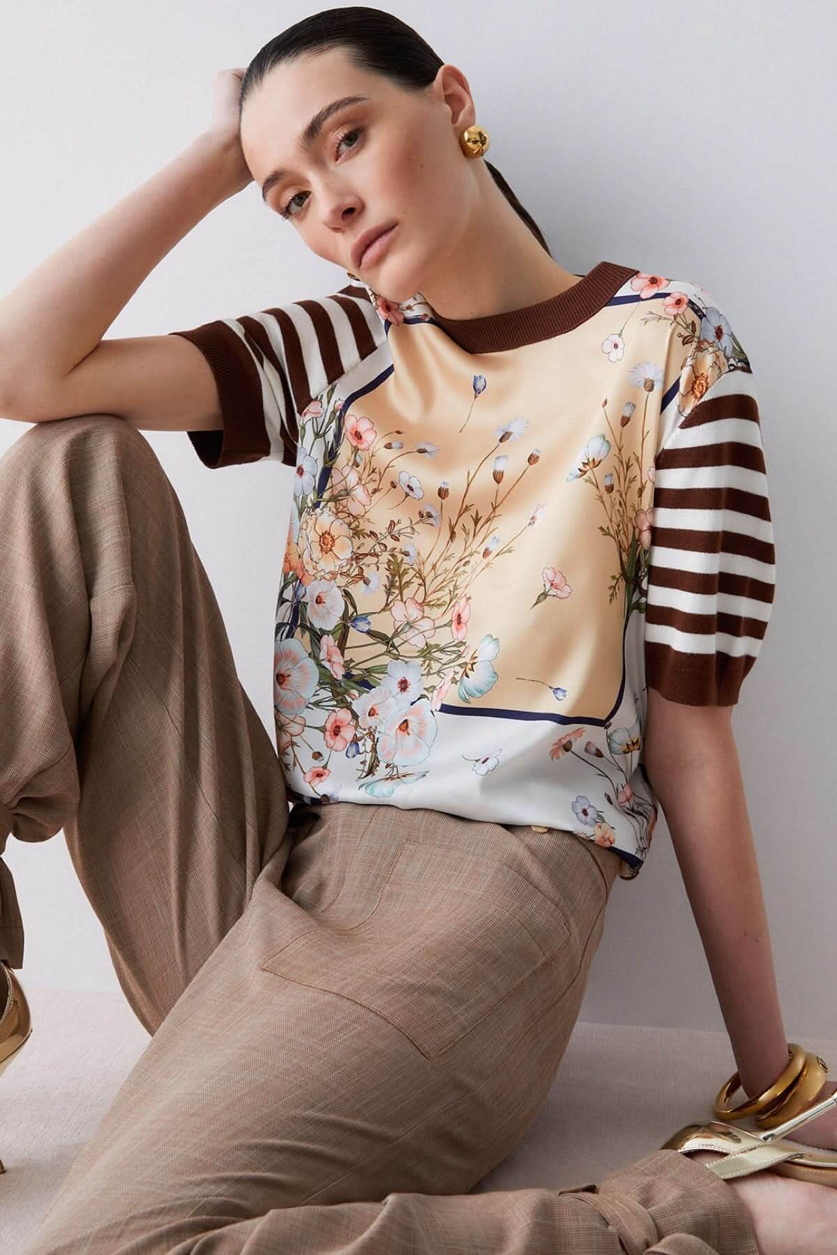 Ce chandail propose une silhouette moderne qui marie élégamment motifs et rayures. Sa maille douce et sa coupe confortable en font une pièce idéale pour le quotidien. Facile à agencer, il apporte une touche raffinée et contemporaine à une tenue décontractée ou plus habillée.