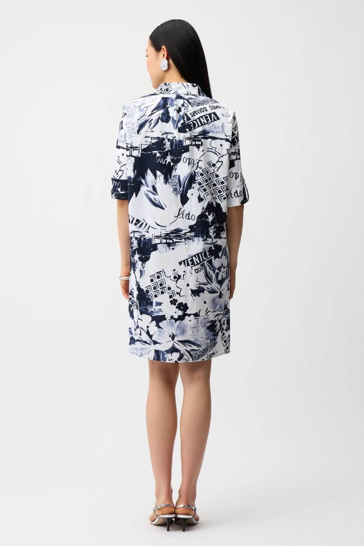 Description: This shirt dress features a straight, streamlined silhouette enhanced by an urban-inspired graphic print. Its shirt collar and button placket give structure to the top, while the flowing Fit ensures comfortable everyday wear. Versatile, it can be worn on its own or with a belt or light jacket to vary your style.