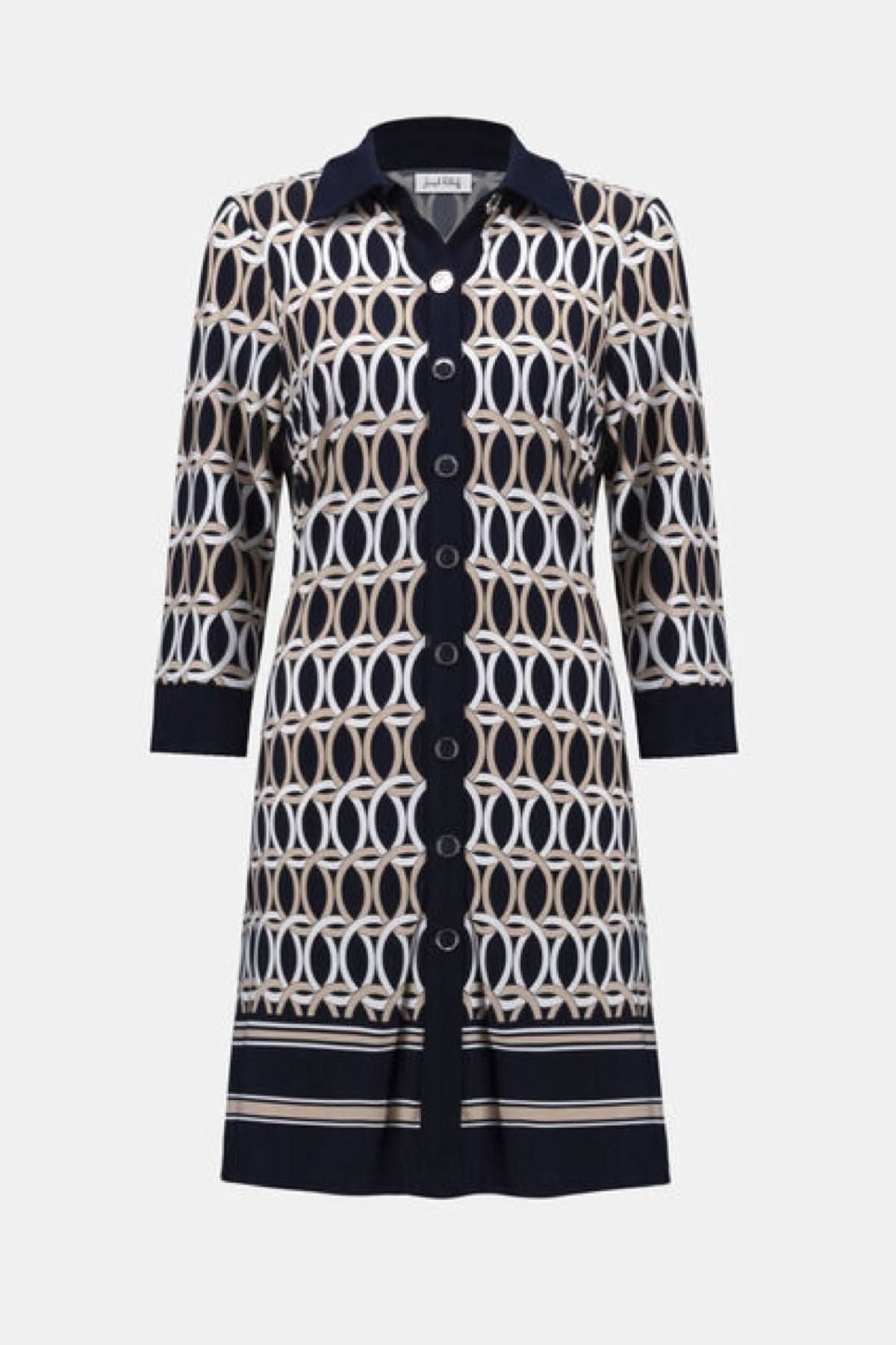 Description: This shirt dress captivates with its structured graphic print and elegant silhouette, easy to wear both for everyday wear and more formal occasions. Its straight cut highlights the body's lines while ensuring optimal comfort, while the full-length button closure adds a classic and versatile touch. A refined style that can be worn on its own or with minimalist accessories.