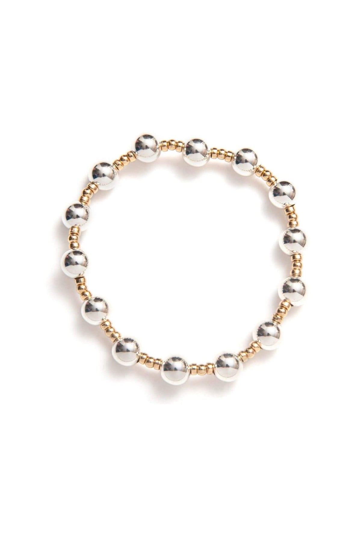 Description: Célébrez votre esprit dynamique avec le bracelet Be Bubbly - Dress To Impress . Cette ravissante pièce est composée de perles de 8 mm combinées à des perles de 3 mm, présentant diverses textures et volumes qui créent un look à la fois ludique et sophistiqué. Fabriqué à partir d'un mélange raffiné de vermeil doré et d'argent sterling, ce bracelet incarne le charme moderne et la polyvalence. Parfait pour ajouter une touche de fun à votre journée ou rehausser votre tenue de soirée, il vous encourage à exprimer votre personnalité unique en toute confiance. Portez-le seul pour une déclaration chic ou superposez-le avec d'autres pièces pour une pile dynamique.