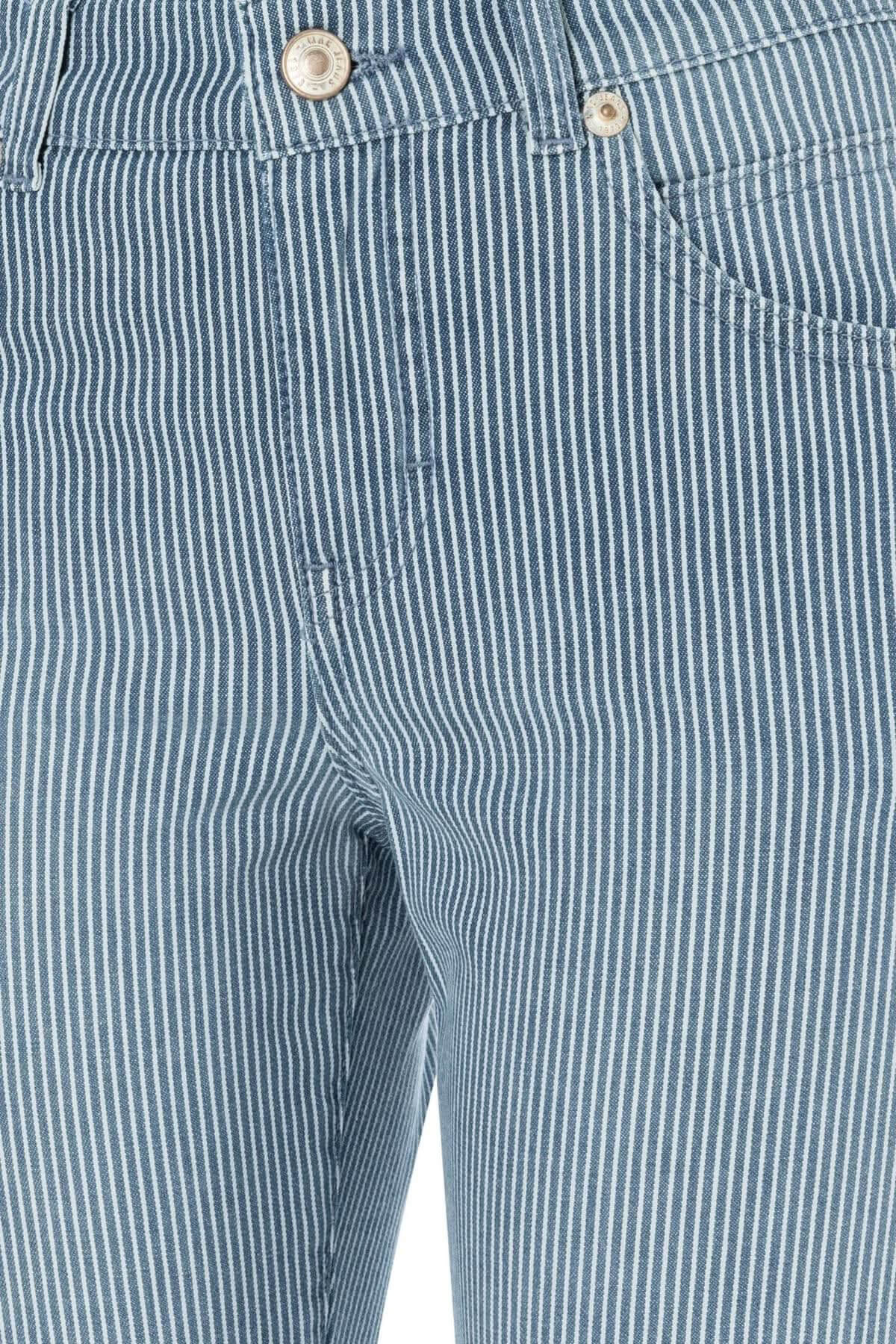 Description: Ce capri à rayures verticales allonge la silhouette tout en apportant une touche estivale décontractée. Sa coupe près du corps et son tissu extensible garantissent un confort optimal du matin au soir. Porte-le avec un t-shirt blanc ou une blouse légère pour un look frais et structuré.