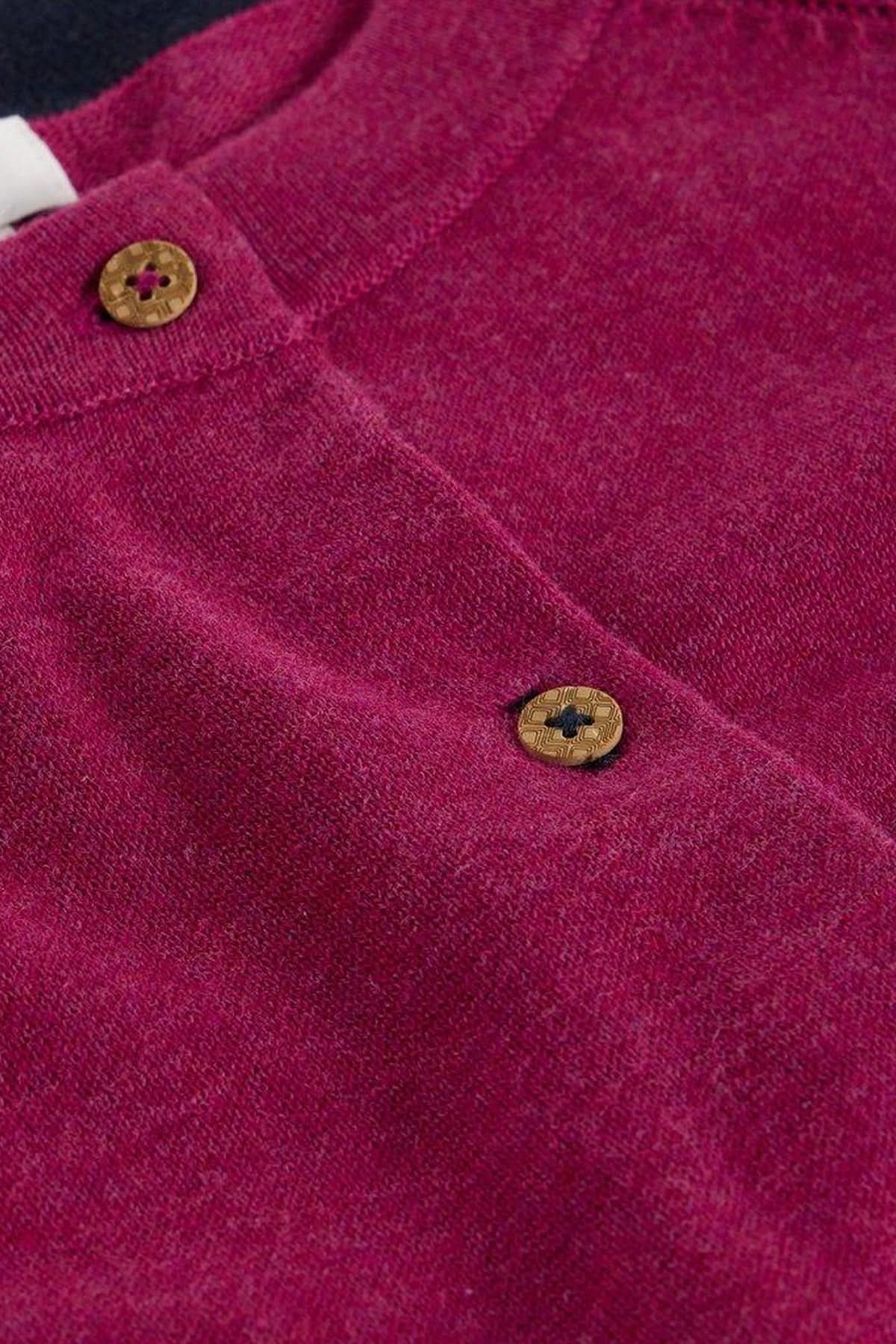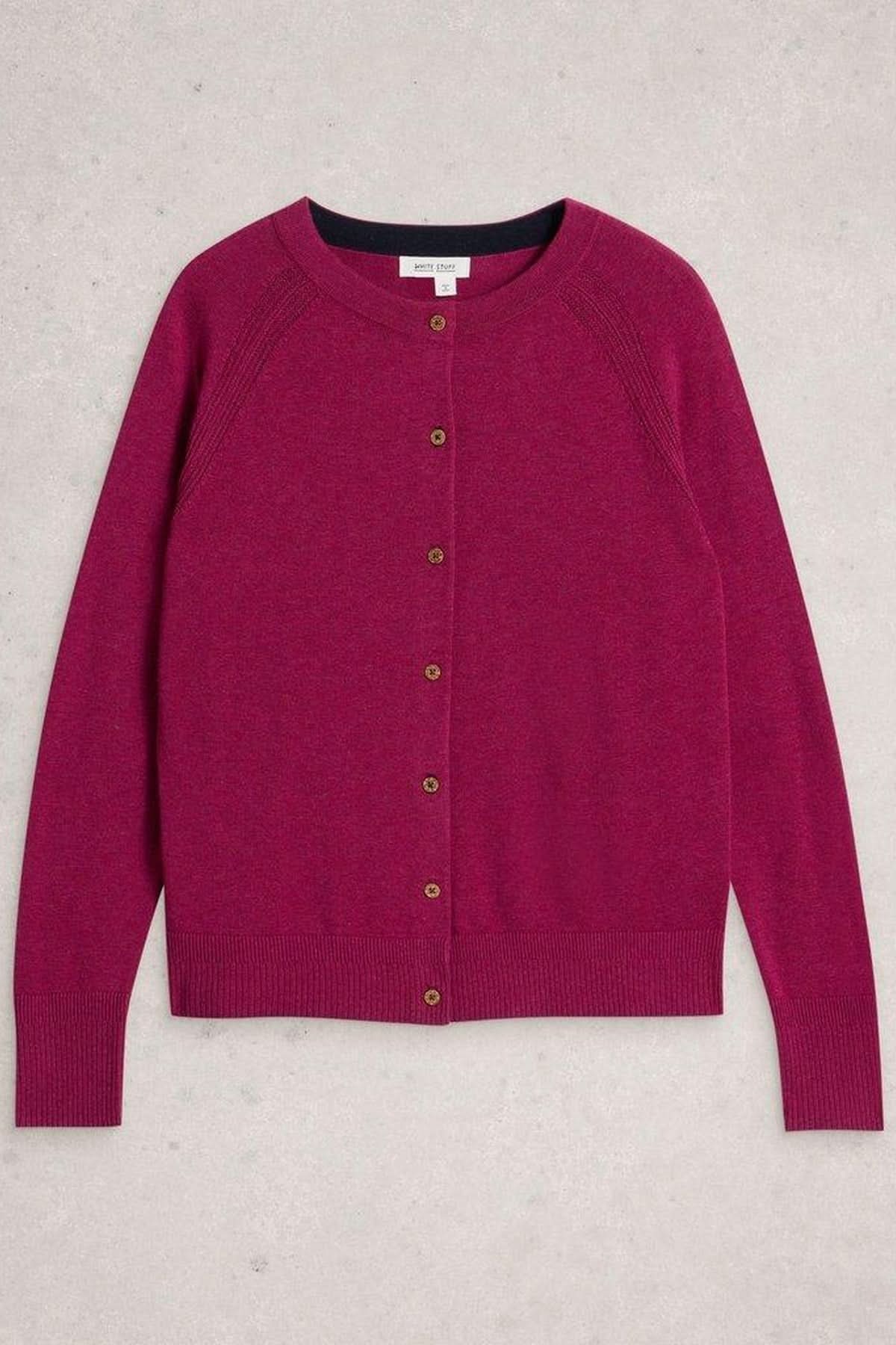 Description: Cardigan de coton léger en maille douce, coupe droite et col rond, parfait pour superposer sur une blouse ou un t-shirt. Les manches raglan et les boutons contrastés apportent une touche soignée. Conseil style : porte-le ouvert sur une chemise imprimée pour jouer les contrastes de textures.