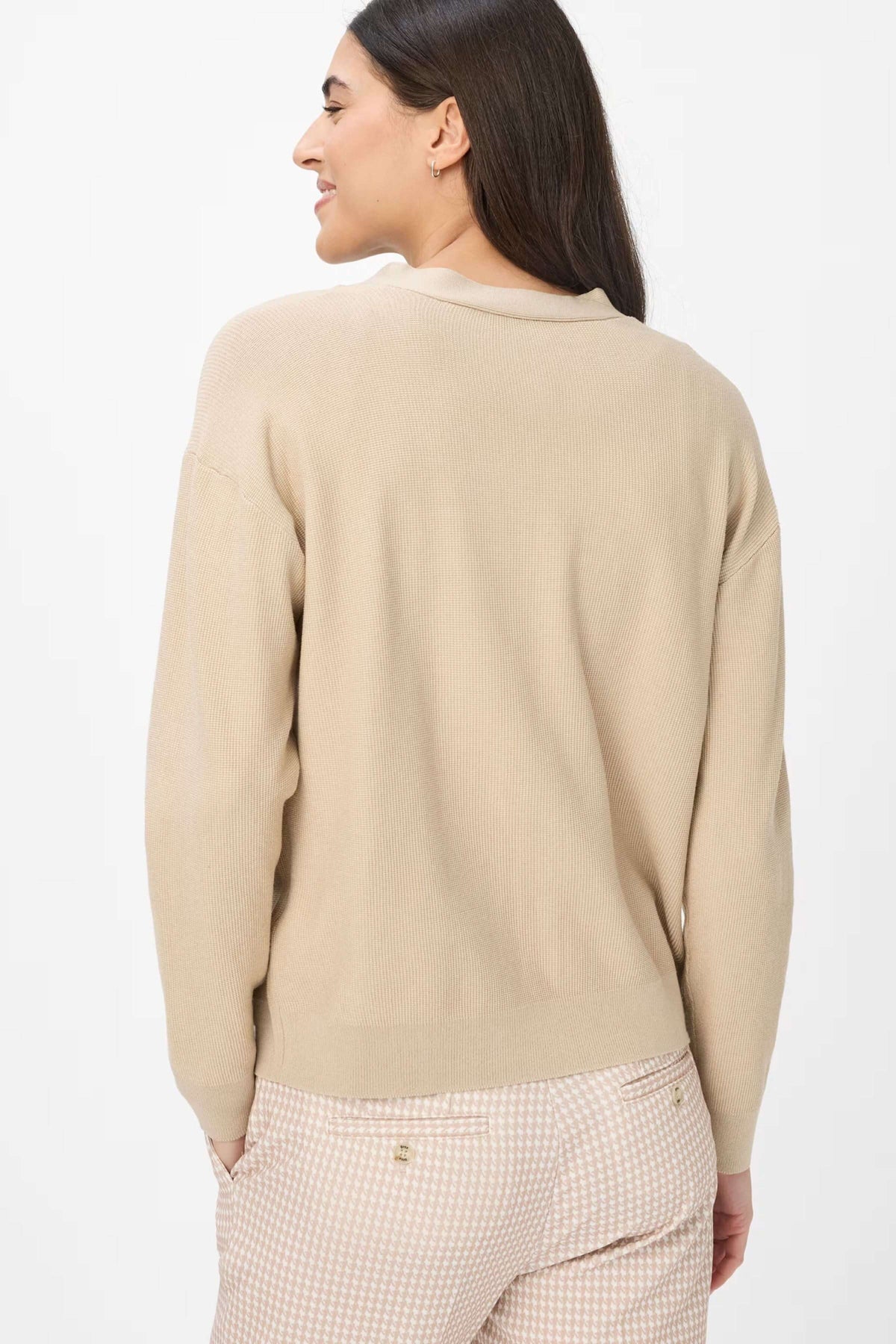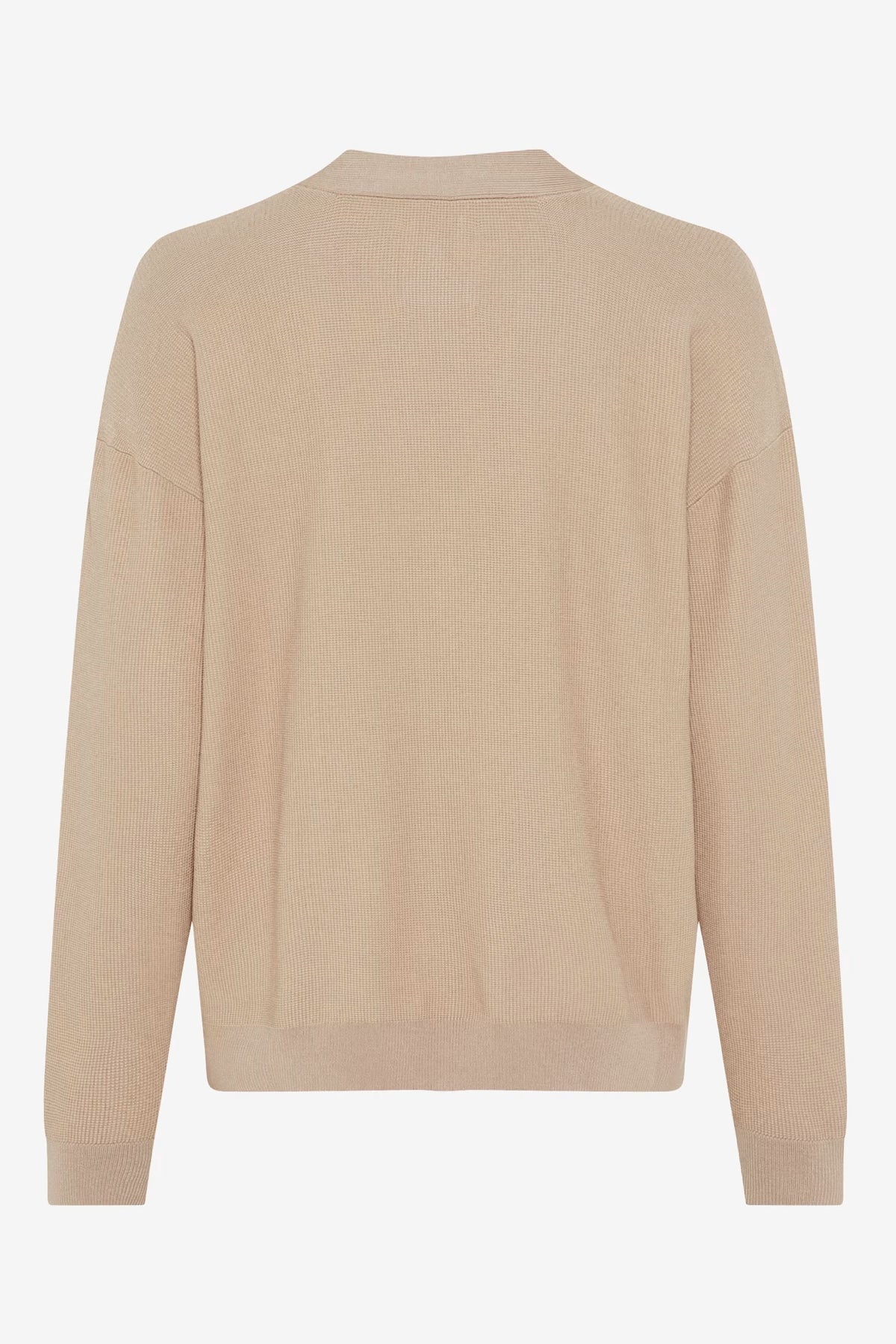 Description: Ce cardigan à encolure en V séduit par sa simplicité élégante et sa coupe légèrement décontractée. Fermé par de gros boutons effet nacré, il se porte aussi bien ouvert que boutonné, offrant une grande polyvalence. Conseil style : associez-le à un pantalon tailleur ou un jean pour un look chic et confortable.
