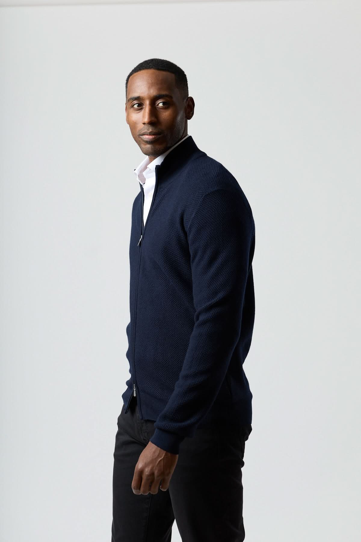 Description : Cardigan entièrement zippé au tombé net, tricoté dans une maille texturée pour un relief discret et une allure soignée. Facile à superposer sur une chemise, il offre confort et structure au quotidien.