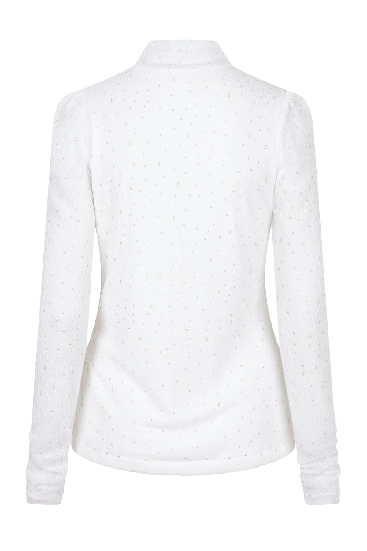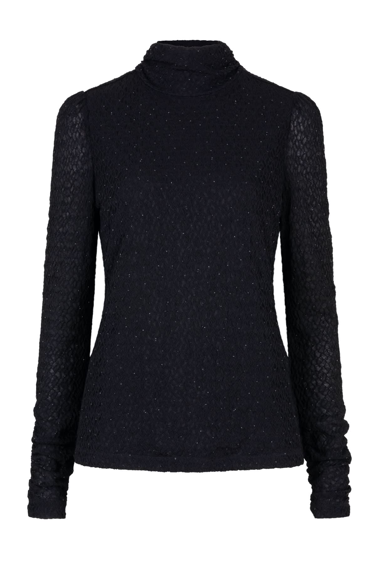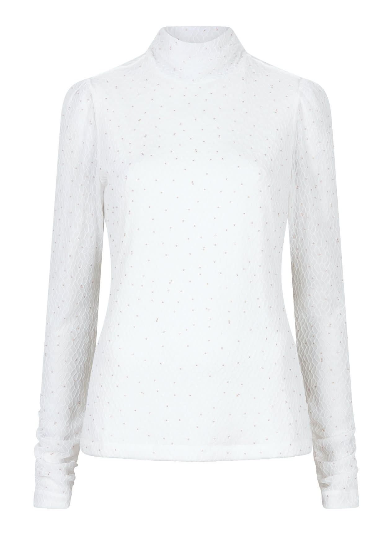 Description : Ce haut à col montant séduit par sa transparence subtile et sa maille délicatement ornée de petits éclats scintillants. Une pièce sophistiquée qui attire la lumière et sublime la silhouette. Conseil style : portez-le rentré dans une jupe satinée ou sous un veston pour un look de soirée élégant.