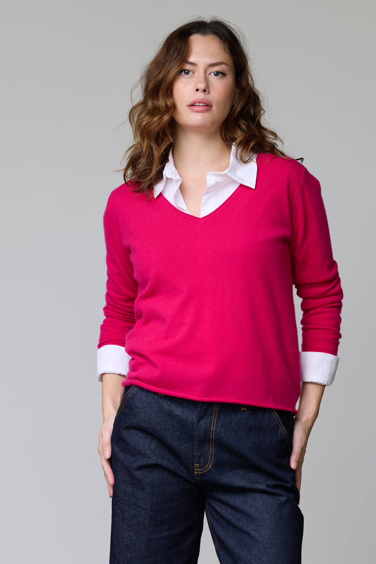 Description: Ce chandail à manches longues séduit par sa simplicité élégante et son encolure en V, idéale pour allonger la silhouette. Sa maille fine et douce procure un confort optimal tout en offrant une allure raffinée. Conseil style : portez-le avec un jean ou un pantalon habillé pour un look polyvalent allant du casual au chic.