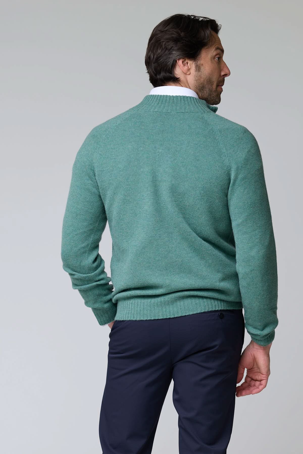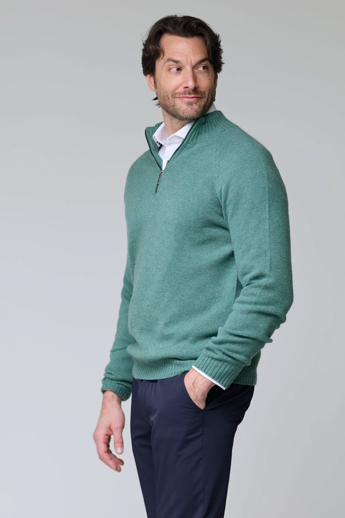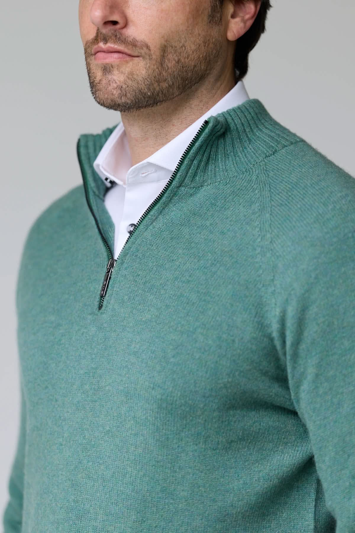 Ce chandail en laine mérinos est à la fois élégant et confortable. Les finitions côtelées aux poignets, à la base et au col ajoutent une touche de sophistication, tandis que la demi-fermeture éclair apporte une note moderne. Que ce soit pour une journée de travail ou une soirée décontractée, ce chandail est un ajout élégant à votre garde-robe.