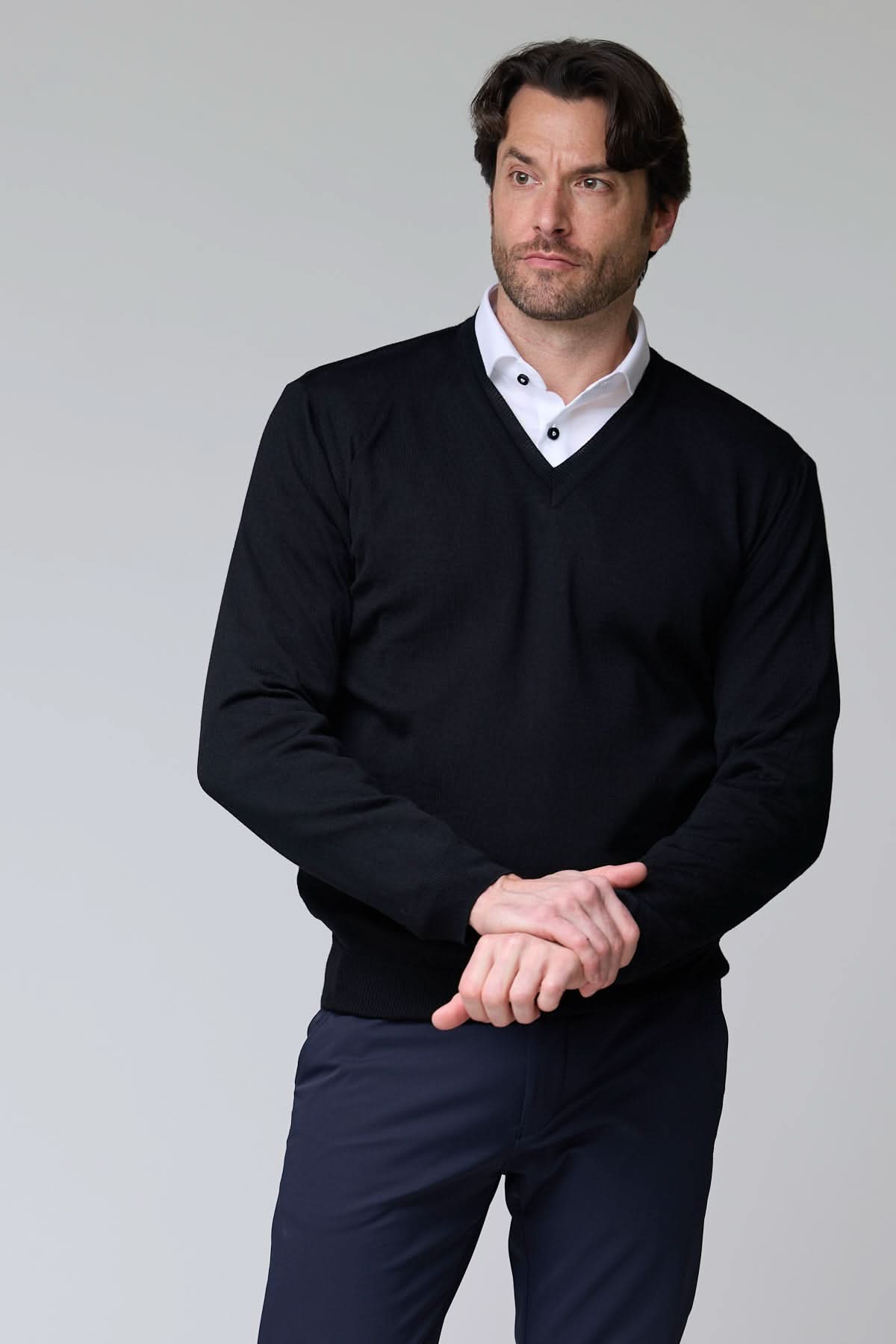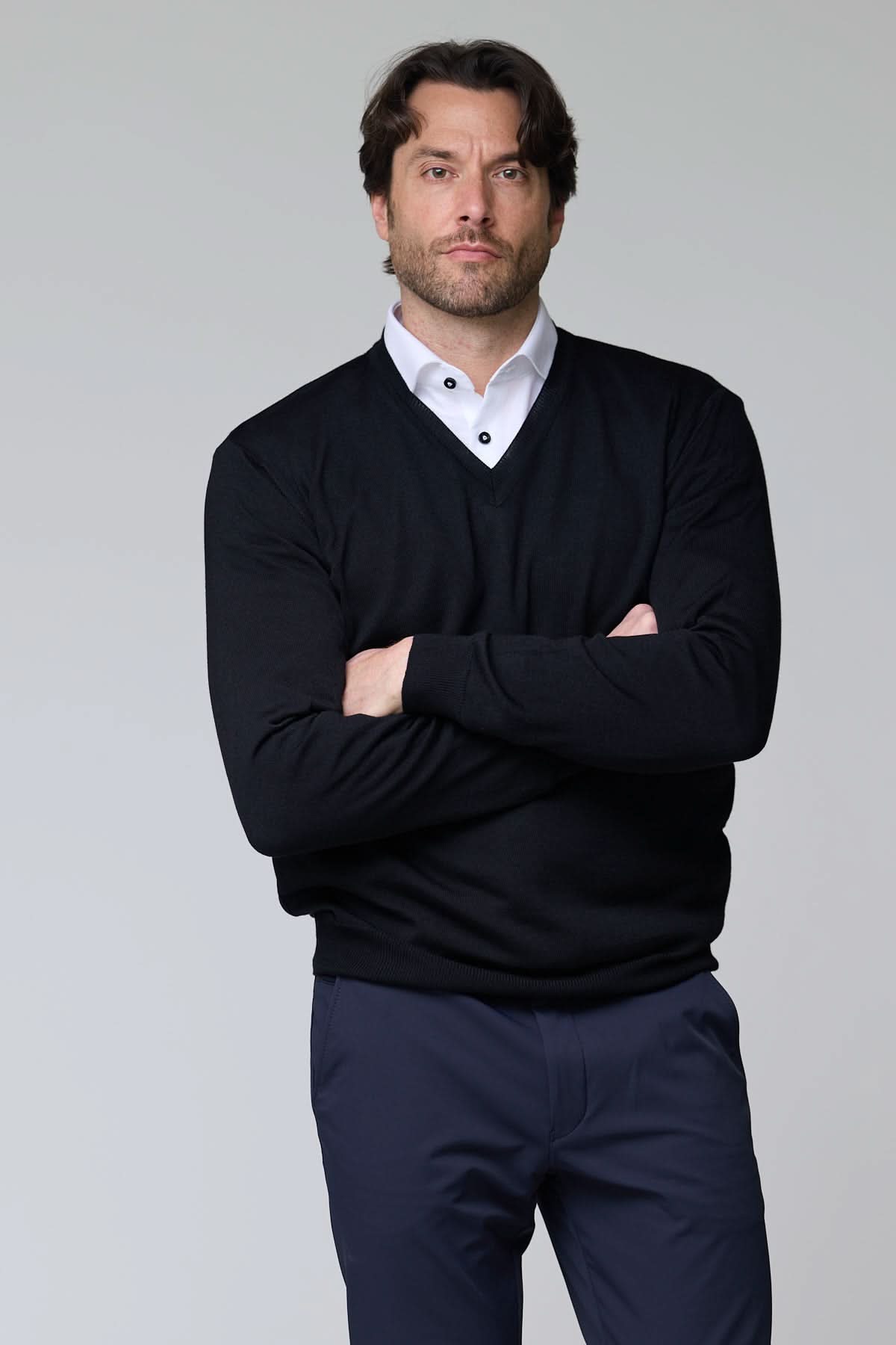 Description : Chandail col en V en laine mérinos fine, offrant une texture douce et respirante. Une pièce essentielle du vestiaire masculin, parfaite sur une chemise pour un style élégant et intemporel.