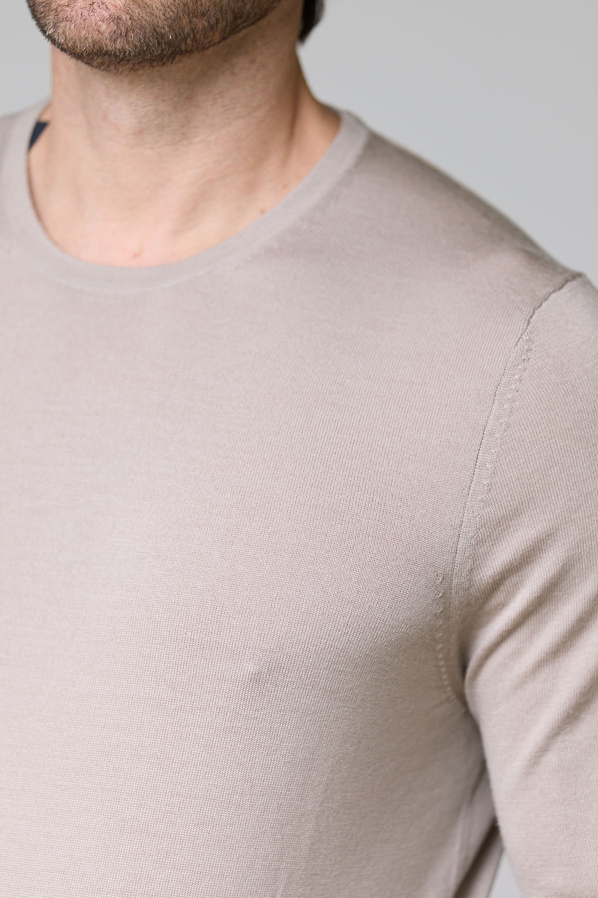 Description : Ce chandail à col rond séduit par sa texture douce et son tombé fluide. Léger et élégant, il peut se porter seul ou sous un veston pour un look raffiné. Sa maille fine assure un confort optimal tout en offrant une allure soignée en toute simplicité.
