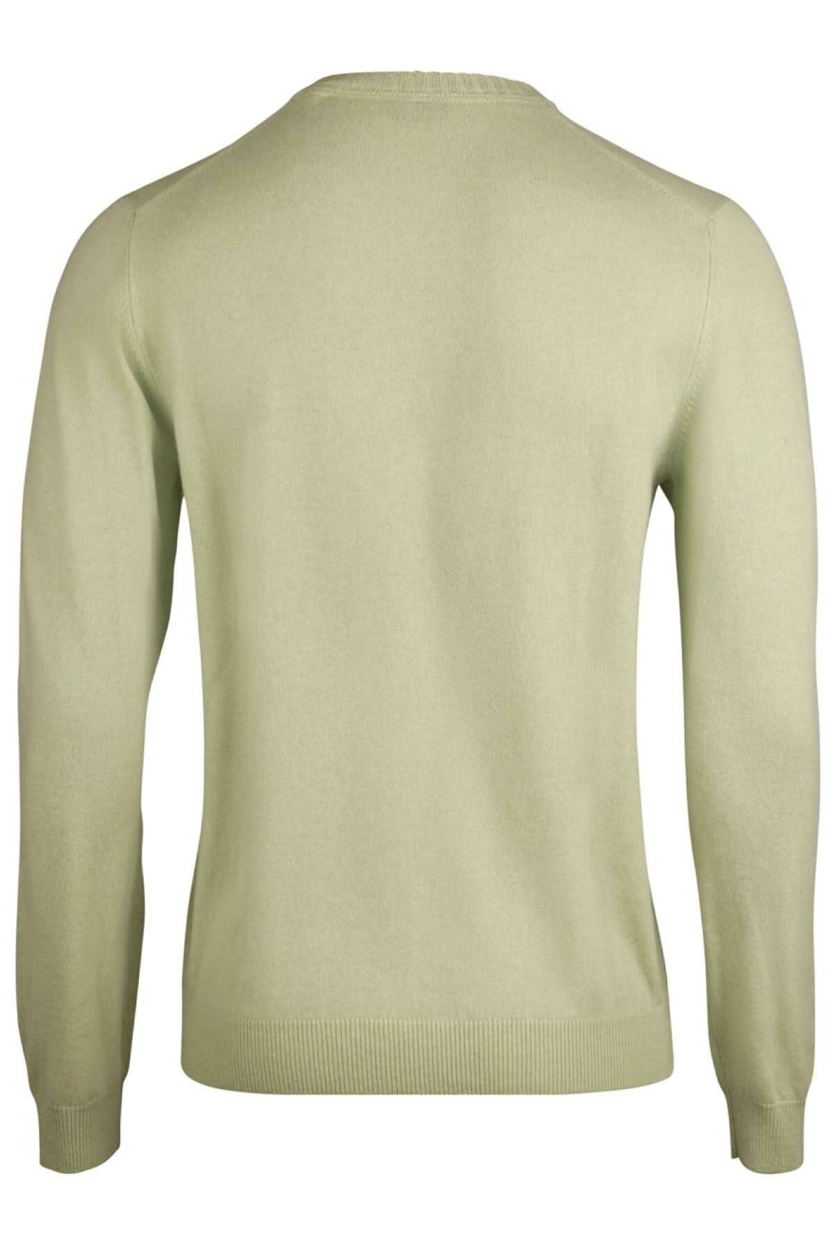 Chandail de cachemire Stenströms, vue arrière, couleur verte, col ras du cou et bordures côtelées.