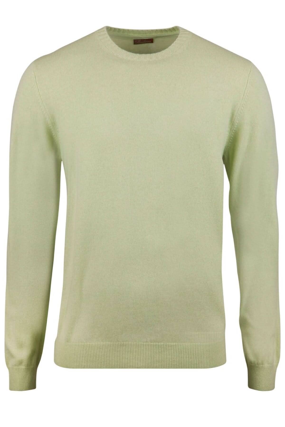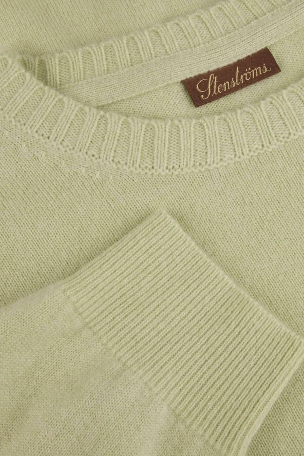 Chandail de cachemire vert clair Stenströms, col ras du cou et bordures côtelées, parfait pour l'hiver.