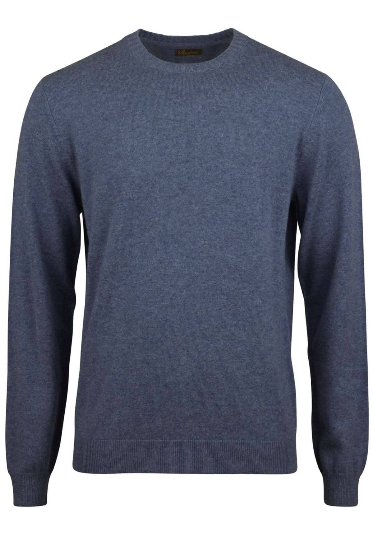 Chandail de cachemire bleu de Stenströms avec col ras du cou et bordures côtelées.