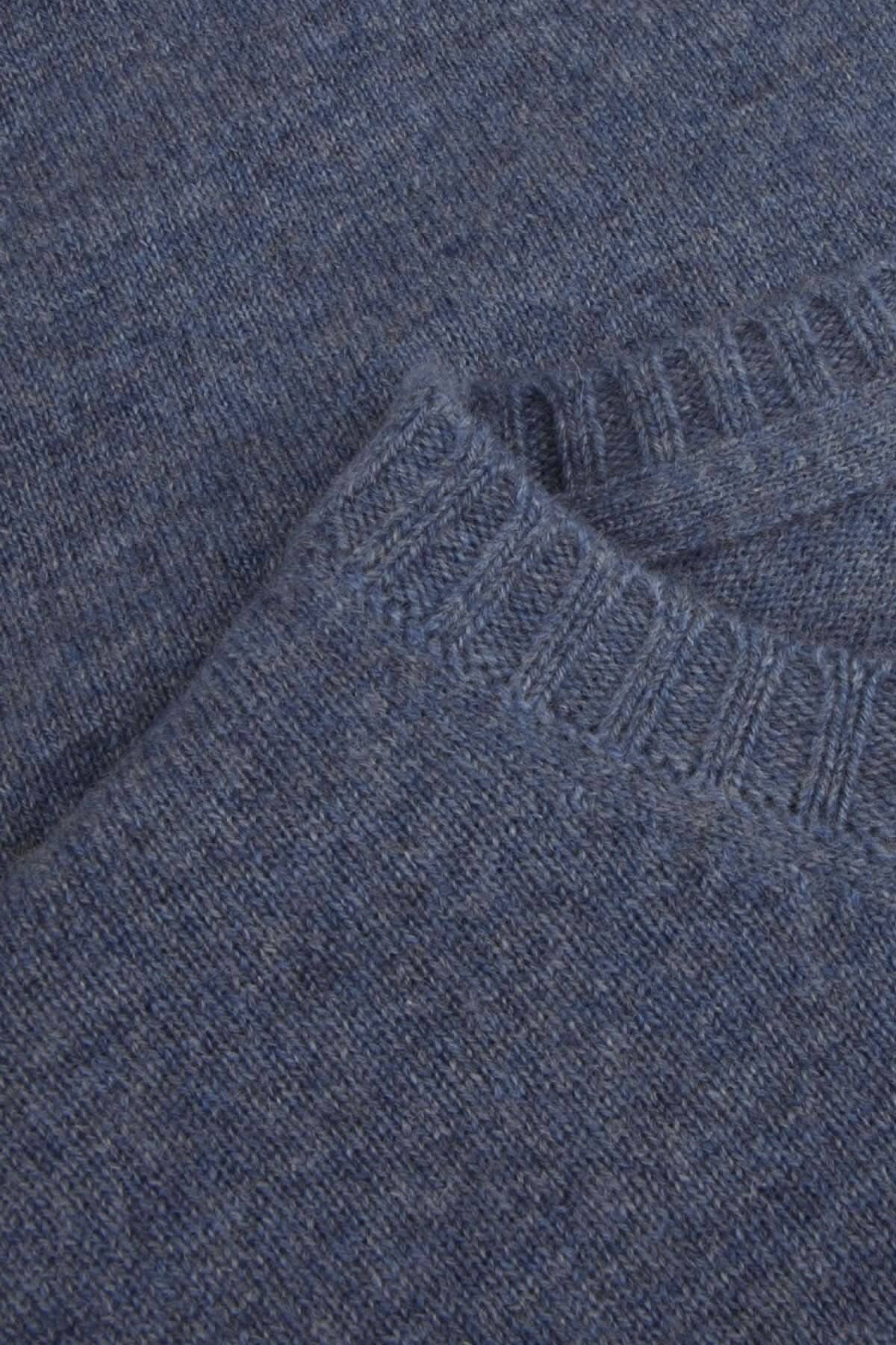 Détail du chandail de cachemire Stenströms en bleu, montrant une manche avec bordures côtelées.