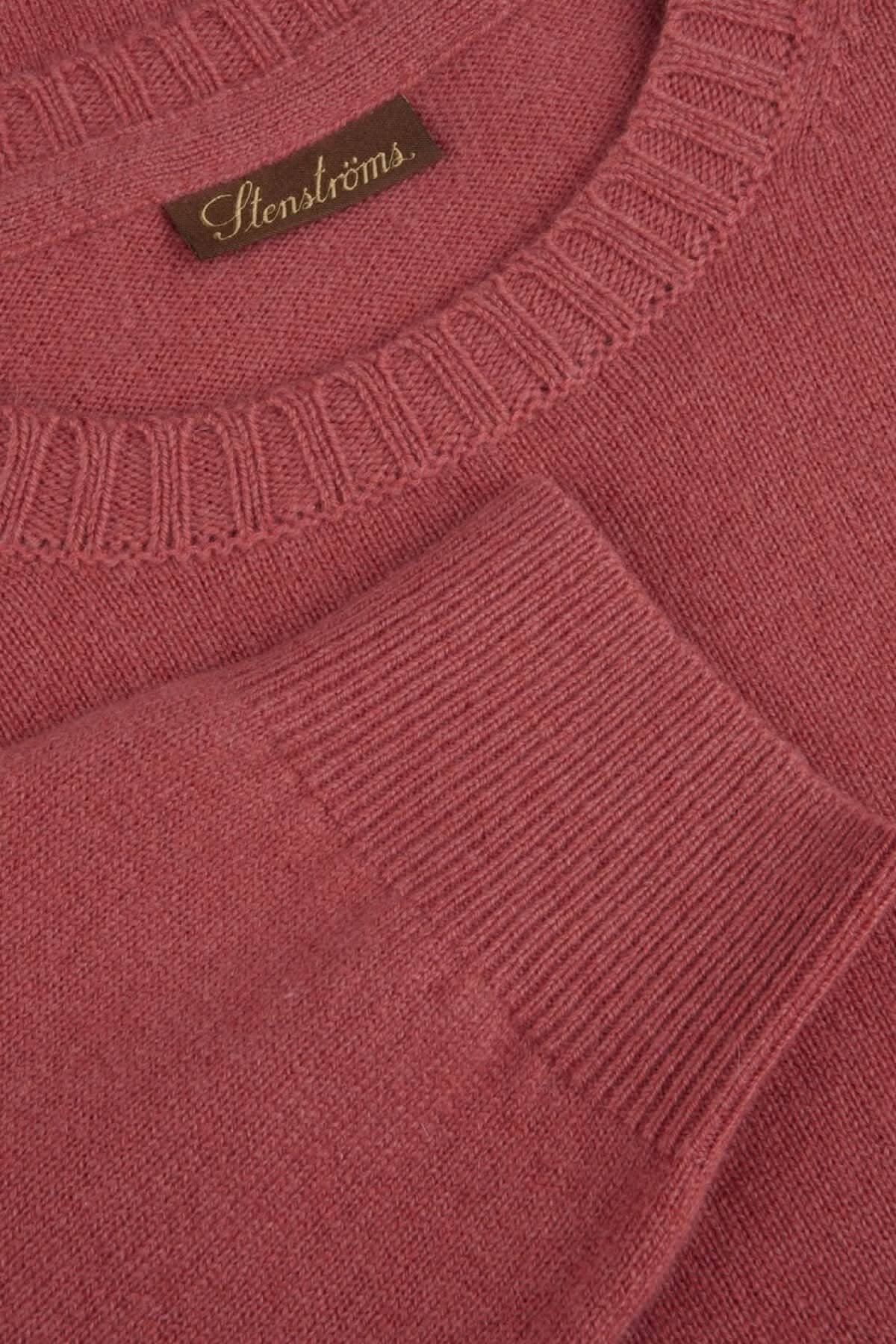 Chandail de cachemire Stenströms en rose, avec col ras du cou et bordures côtelées, 100% cachemire.