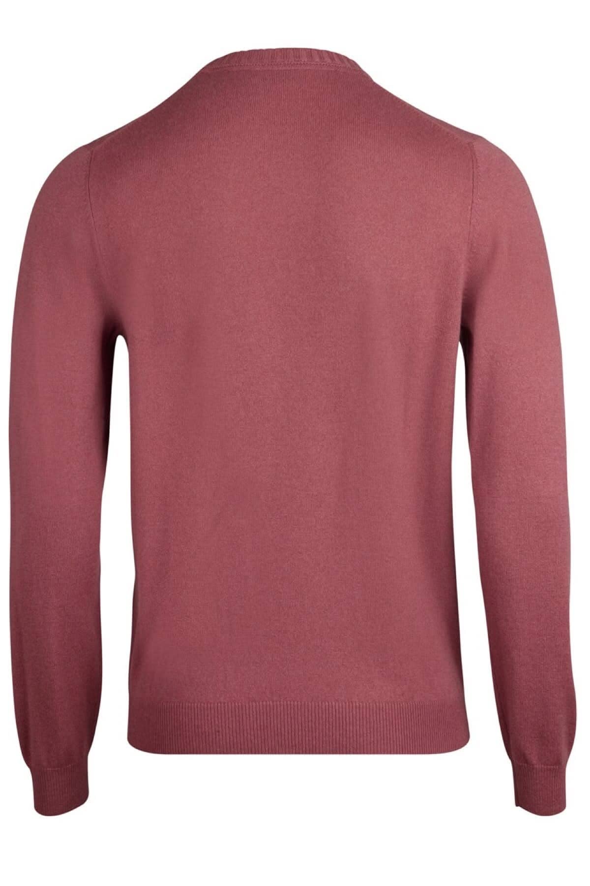 Chandail de cachemire Stenströms vue arrière, col ras du cou et bordures côtelées, couleur rose.