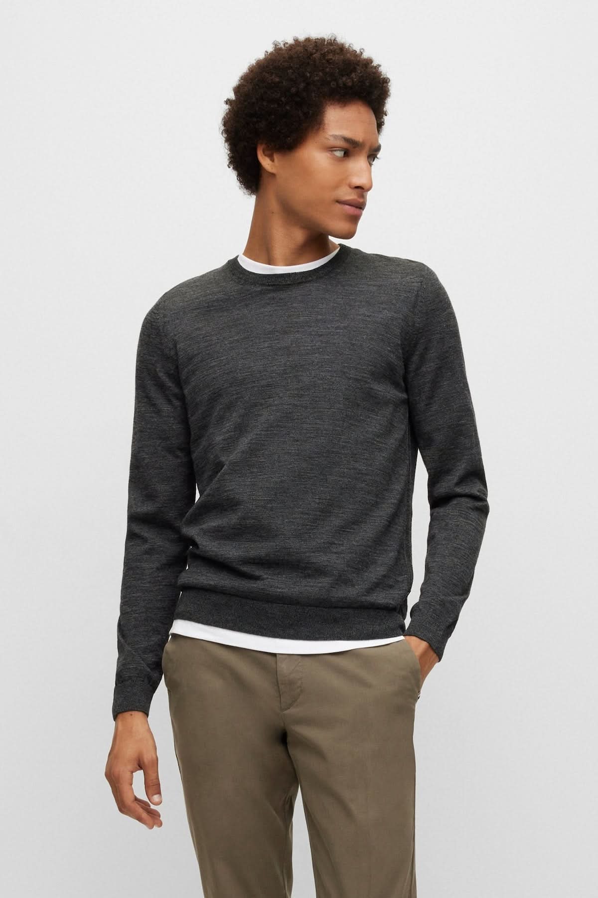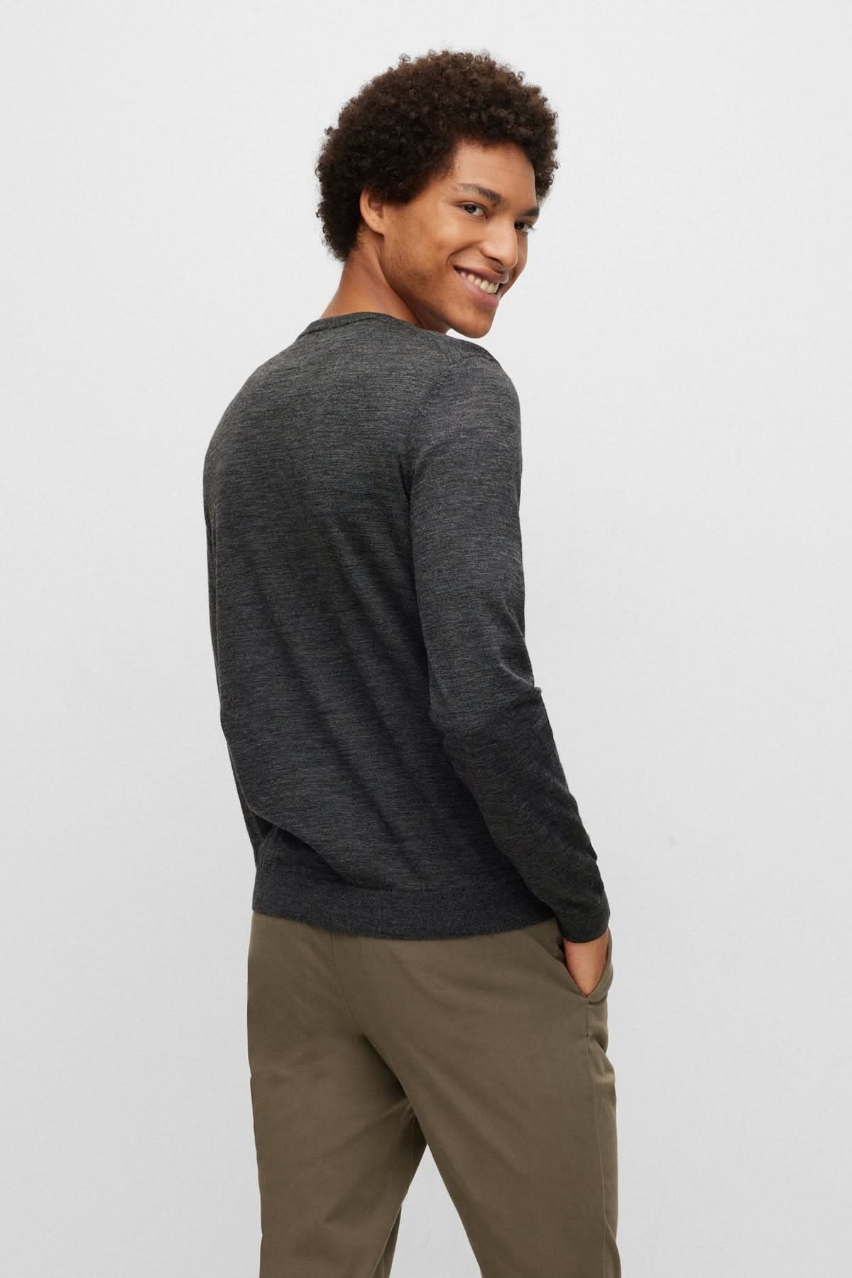 Description : Ce chandail BOSS allie élégance et confort grâce à sa confection en laine vierge mérinos douce et respirante. Sa coupe ajustée et son col rond lui confèrent une allure intemporelle, parfaite autant pour le bureau que pour les moments de détente. À porter seul ou sous une veste pour un style raffiné et polyvalent.