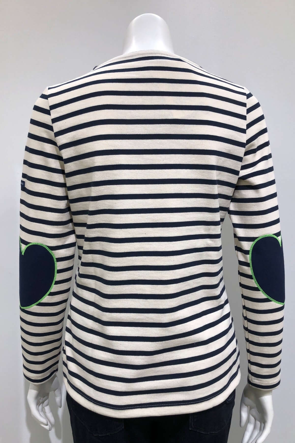 Description: Ce chandail marinière revisite un classique avec une touche ludique et moderne grâce à ses coudières en forme de cœur. Sa coupe droite et son coton doux en font une pièce confortable et tendance. Conseil style : portez-le avec un jeans brut pour un look casual ou sous un veston pour une allure plus chic.