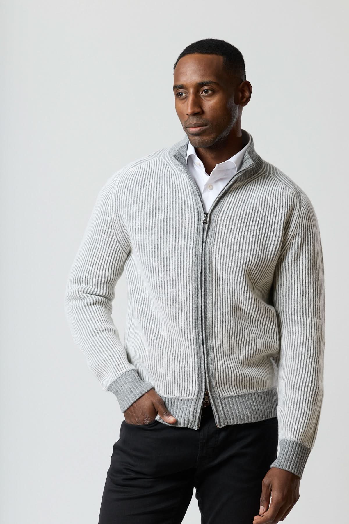 Description : Cardigan masculin au relief côtelé qui apporte tenue et chaleur tout en restant confortable au quotidien. La fermeture zippée permet un porté ouvert ou fermé selon la température et le style. Conseil style : superposez-le sur une chemise blanche ou un col roulé pour un look propre et soigné.