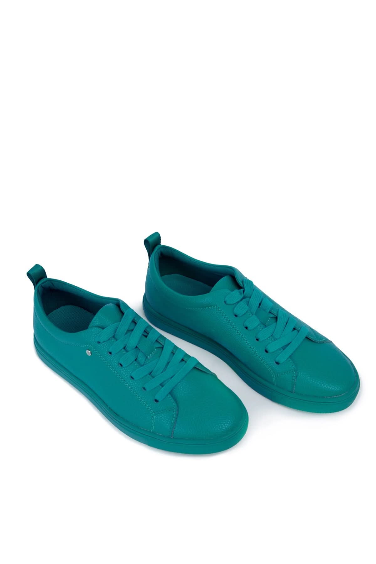 Chaussures simples à lacets pour femme, design moderne en couleur turquoise, idéales pour un look décontracté.