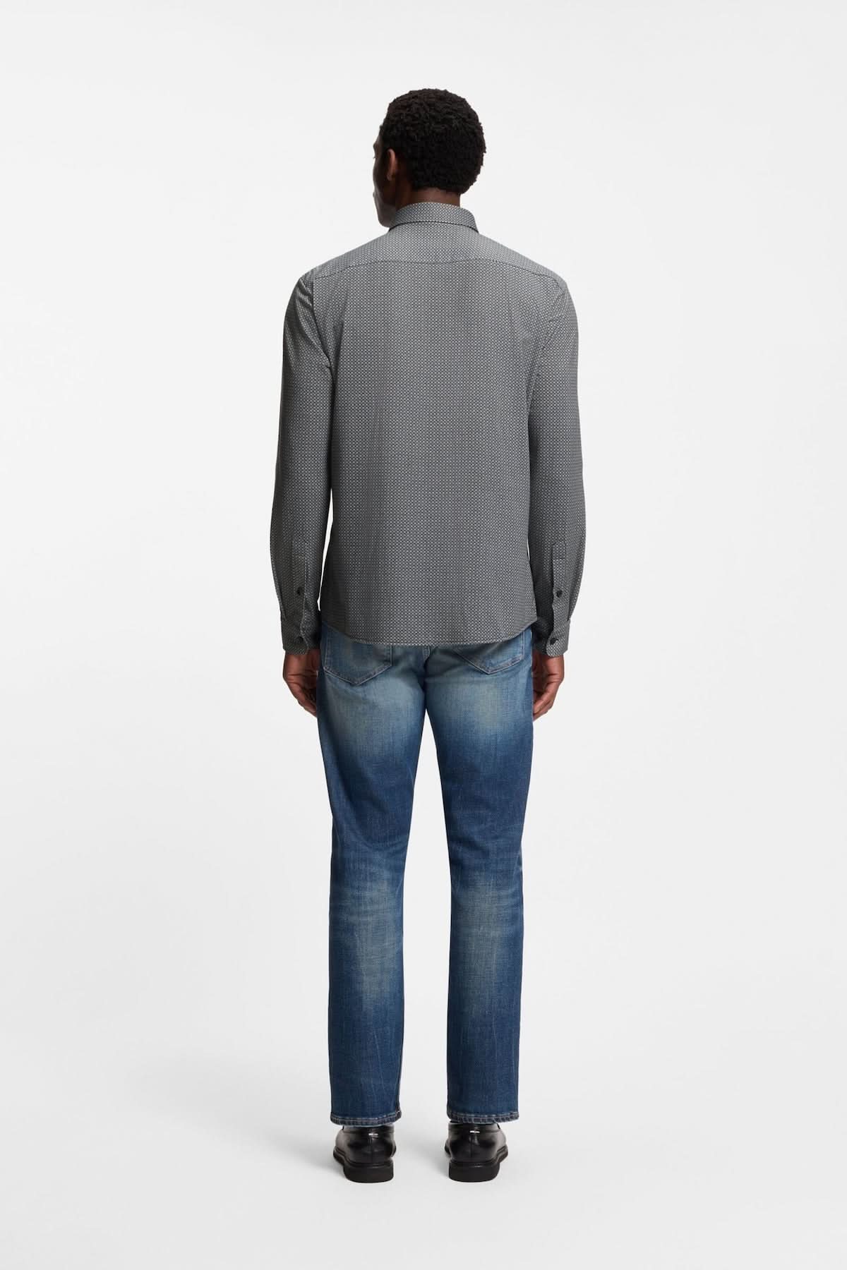 Homme portant Chemise à motif moderne Roan Kent de dos avec jean, coupe ajustée et col Kent, idéale pour look raffiné.