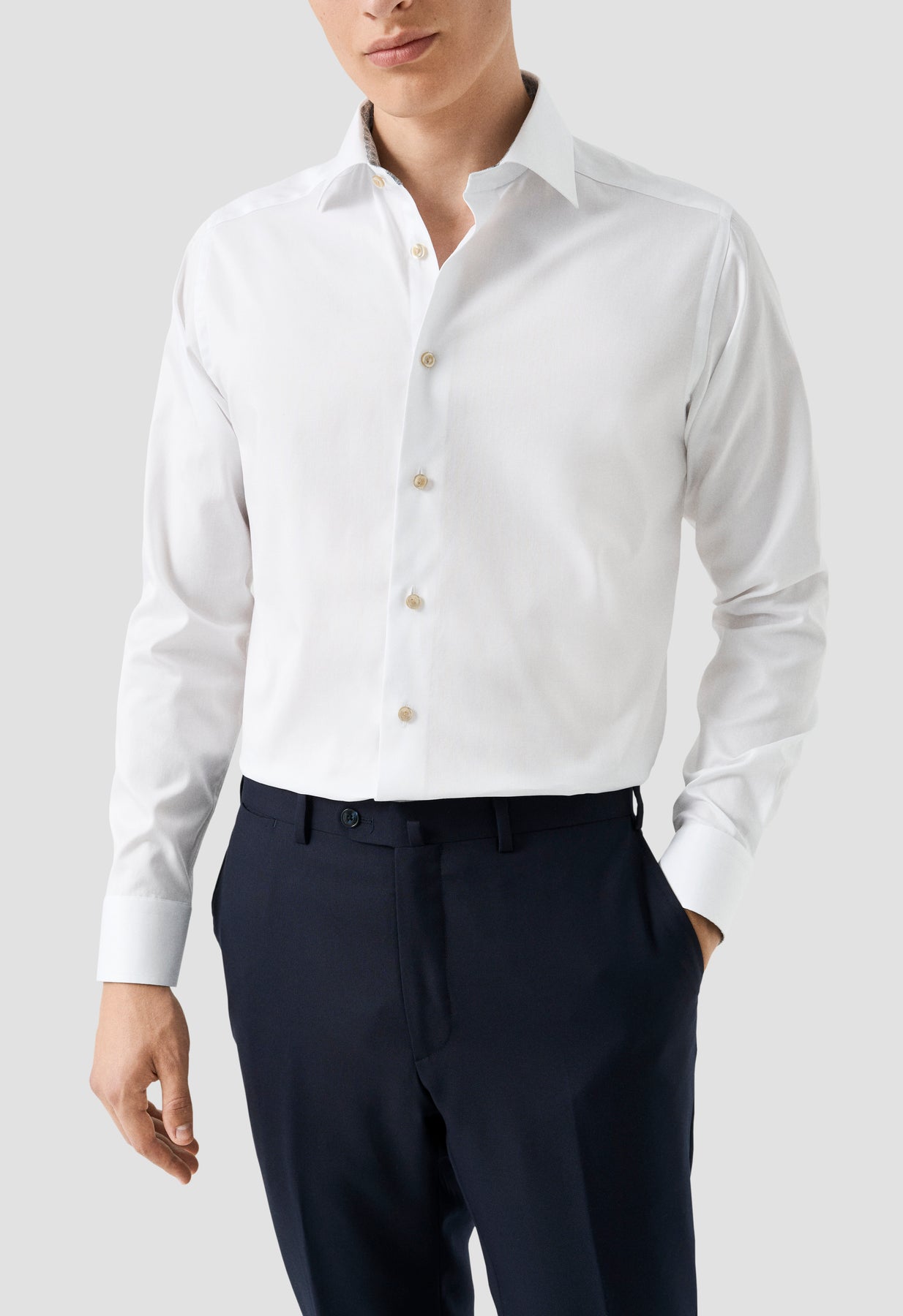 Description : Une chemise élégante au design épuré, relevée par un imprimé discret à l’intérieur du col et des poignets. Idéale pour les occasions professionnelles ou les événements habillés, elle combine raffinement et confort. Conseil mode : retroussez les manches pour faire ressortir les détails imprimés avec subtilité.