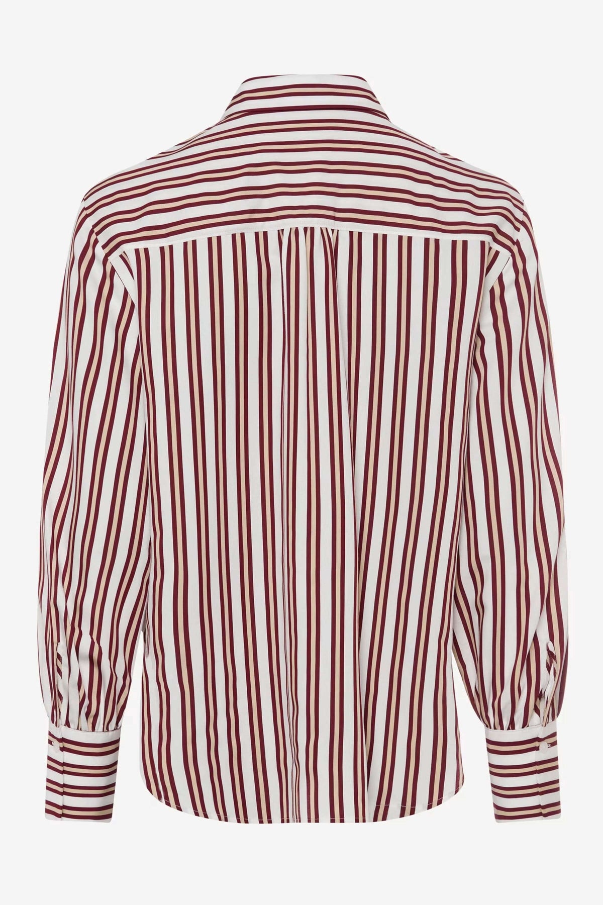 Description: Cette chemise rayée allie élégance intemporelle et confort moderne. Sa coupe droite et son tissu fluide en font une pièce polyvalente, parfaite pour le bureau comme pour les sorties. Conseil style : portez-la rentrée dans un pantalon habillé ou avec un jean pour un look chic-décontracté.