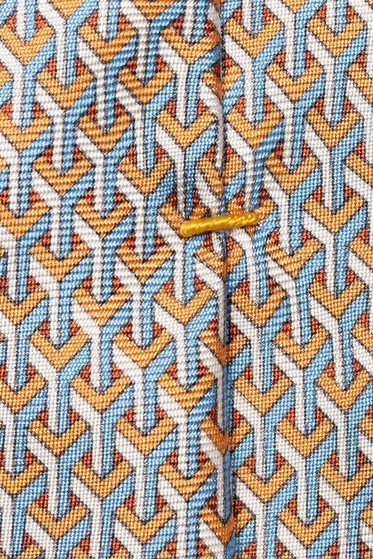Ajoutez une touche de raffinement et de dynamisme à votre tenue avec cette cravate en soie signée Eton. Son motif géométrique sophistiqué en orange, bleu clair et blanc crée un effet visuel structuré, idéal pour rehausser un costume classique ou apporter une note distinctive à un look formel.