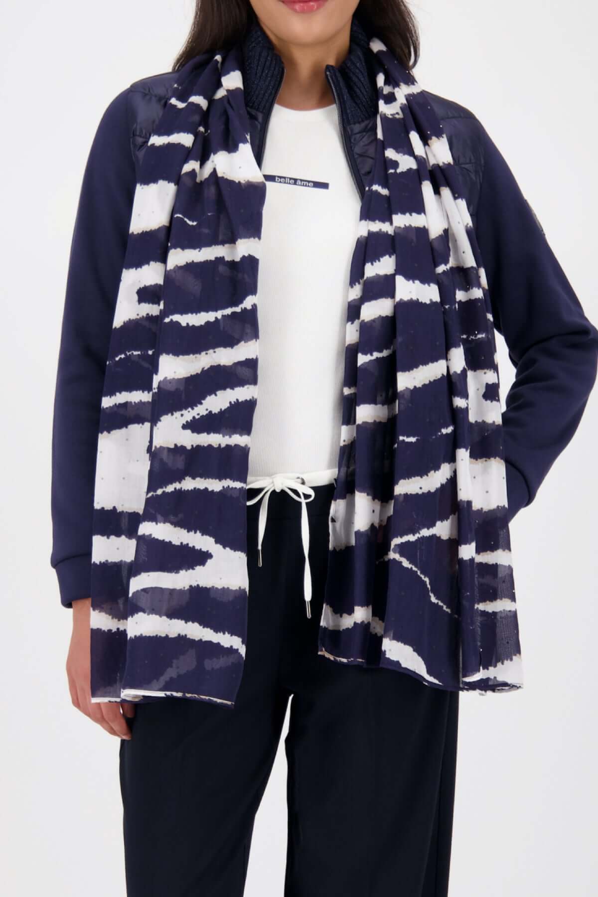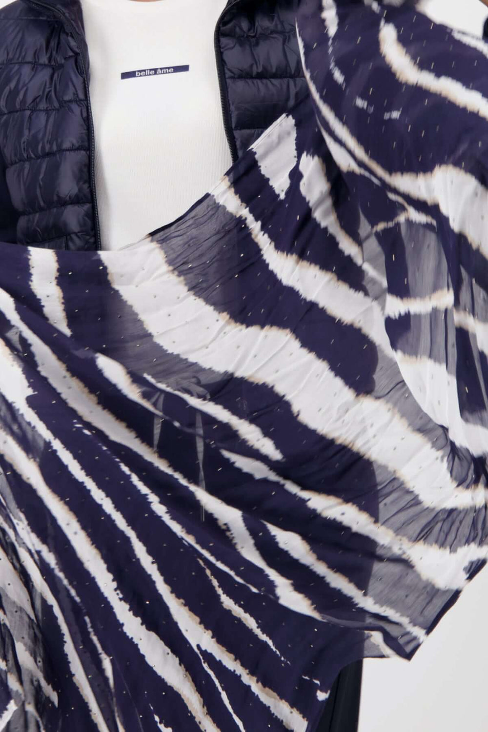 Description : Cette écharpe tendance en viscose fluide arbore un motif zébré saisissant orné de strass. Sa forme rectangulaire permet de multiples styles : portée autour du cou, en bandeau ou simplement comme accessoire décoratif. Son tissu doux et léger apporte une touche d'originalité à toutes vos tenues.