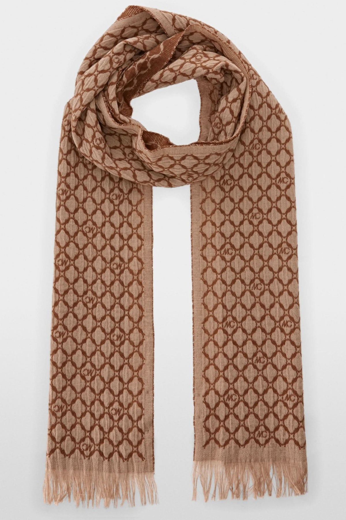Description: Cette écharpe se distingue par sa double face bicolore. Elle est fabriquée en laine chaude. Sa forme longue est ornée de franges décontractées aux extrémités.