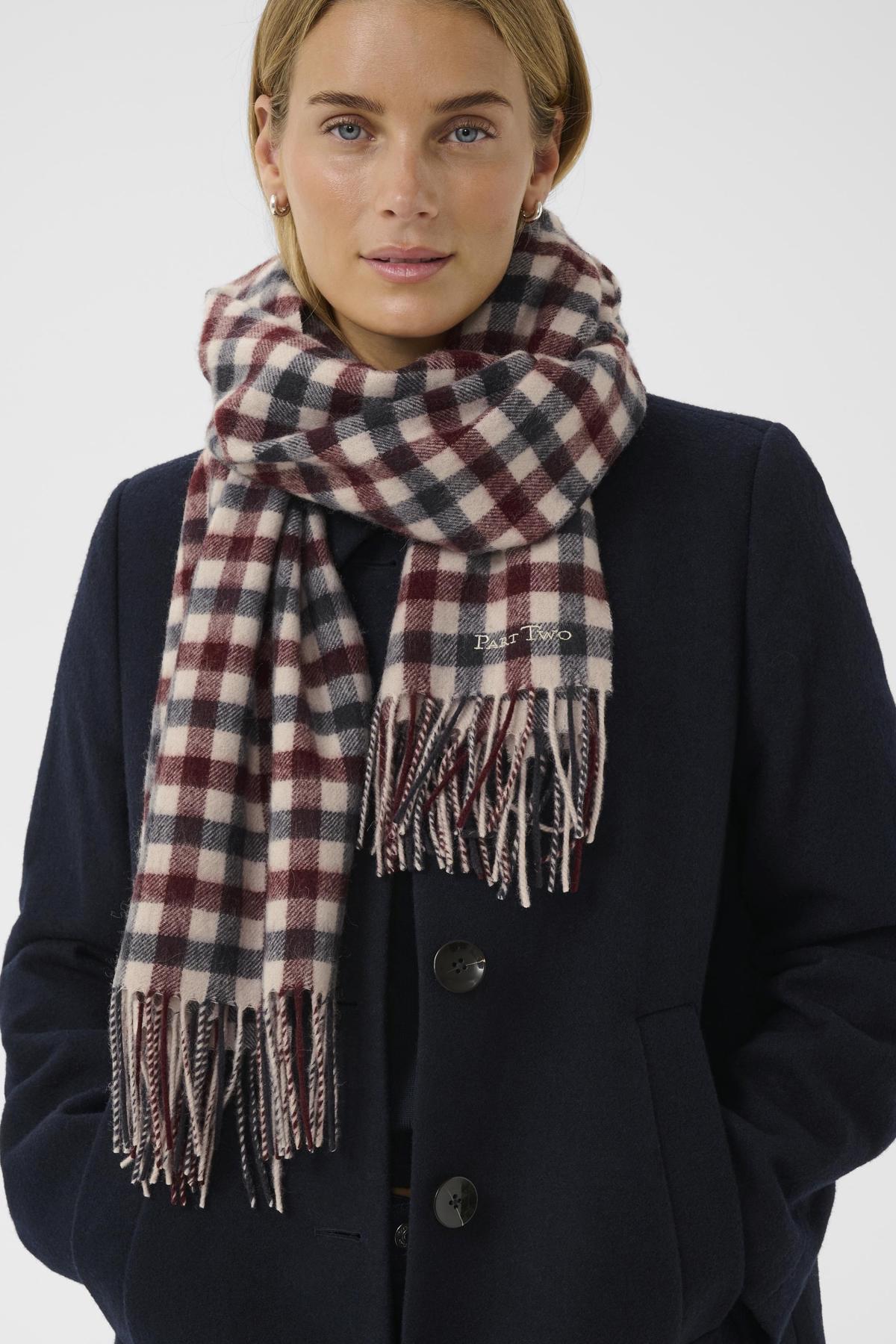 Foulard en laine Kitha couleur marron avec franges, accessoire d'hiver élégant et chaleureux.