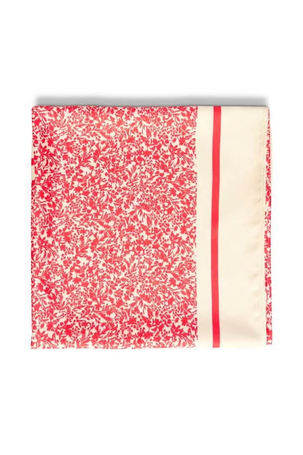 Foulard Namira en viscose, imprimé floral rouge et crème, parfait pour accessoriser vos tenues.