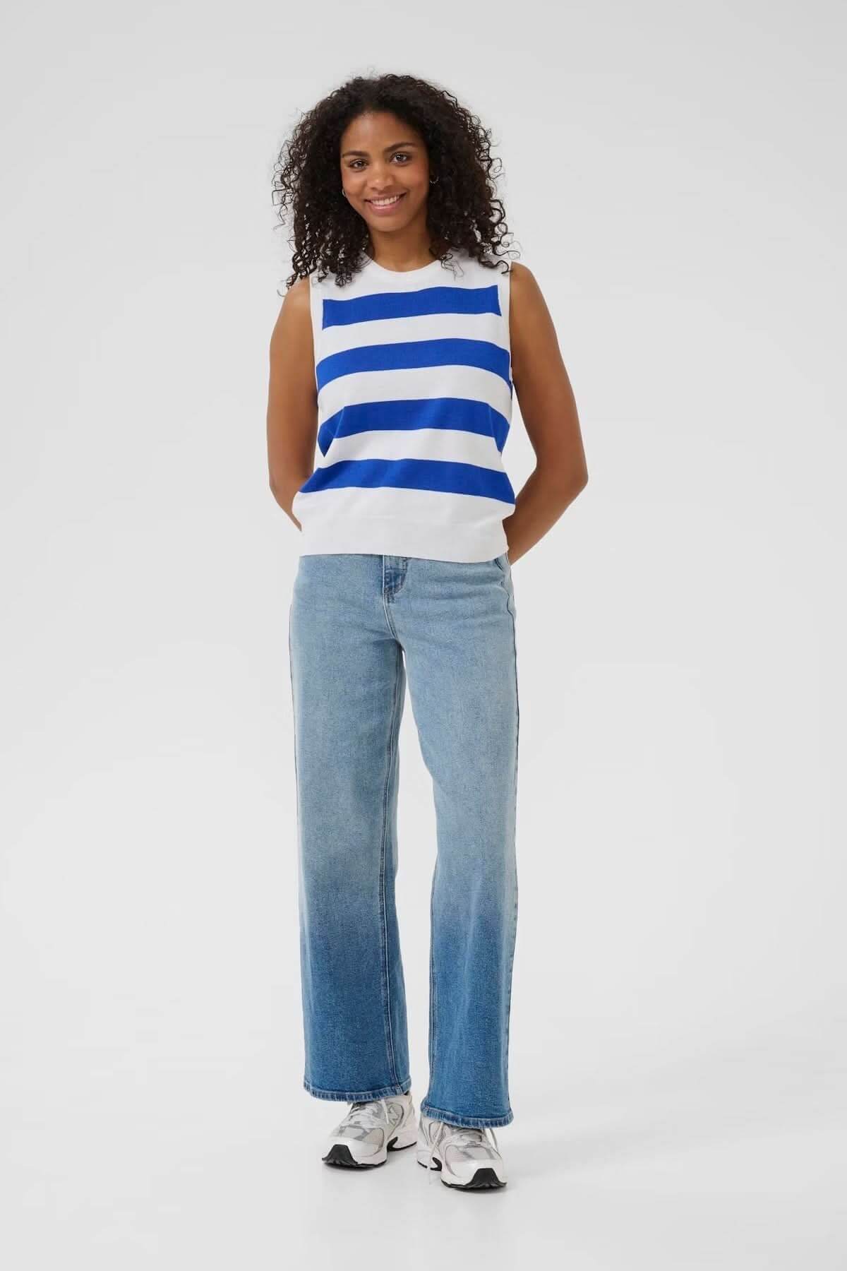 Description : Haut sans manches à rayures marines, alliant fraîcheur estivale et style intemporel. Sa coupe simple et flatteuse en fait une pièce facile à superposer ou à porter seule. Idéal pour insuffler une touche de bord de mer à votre tenue.