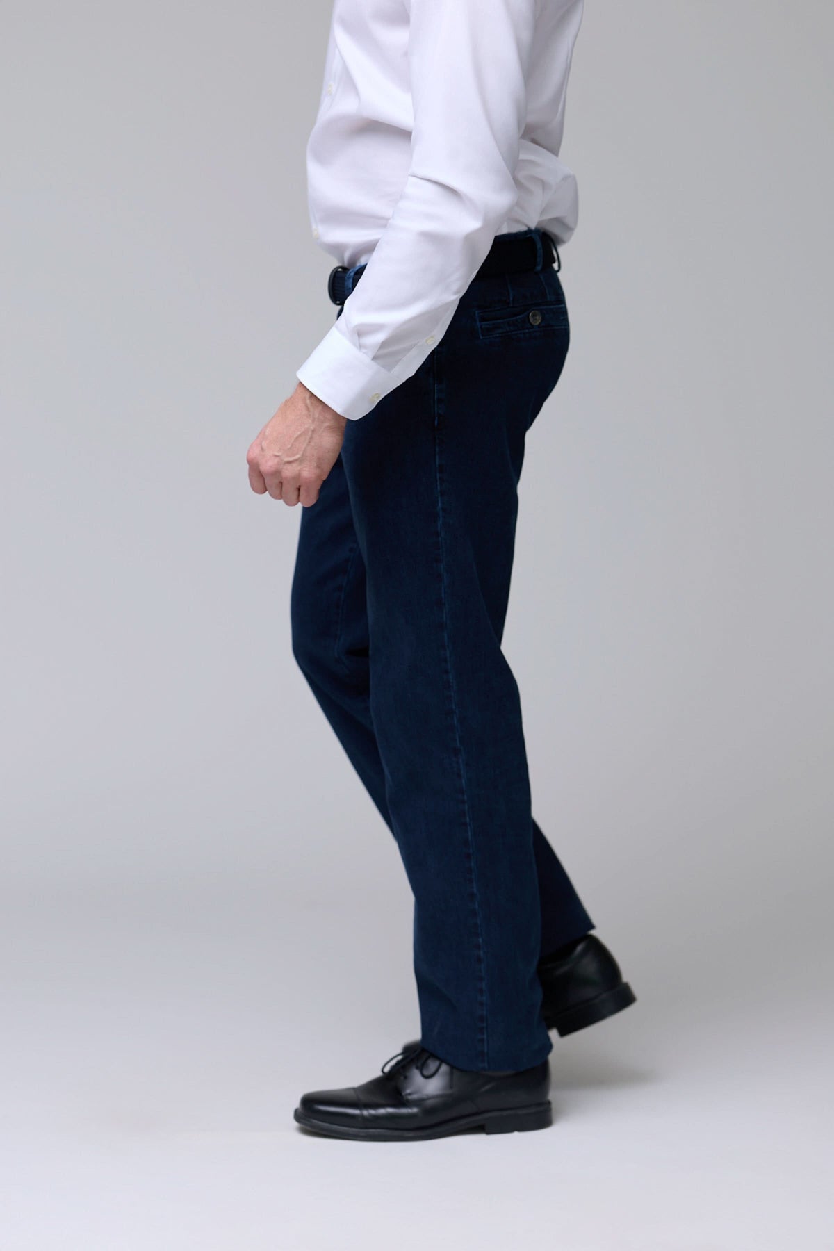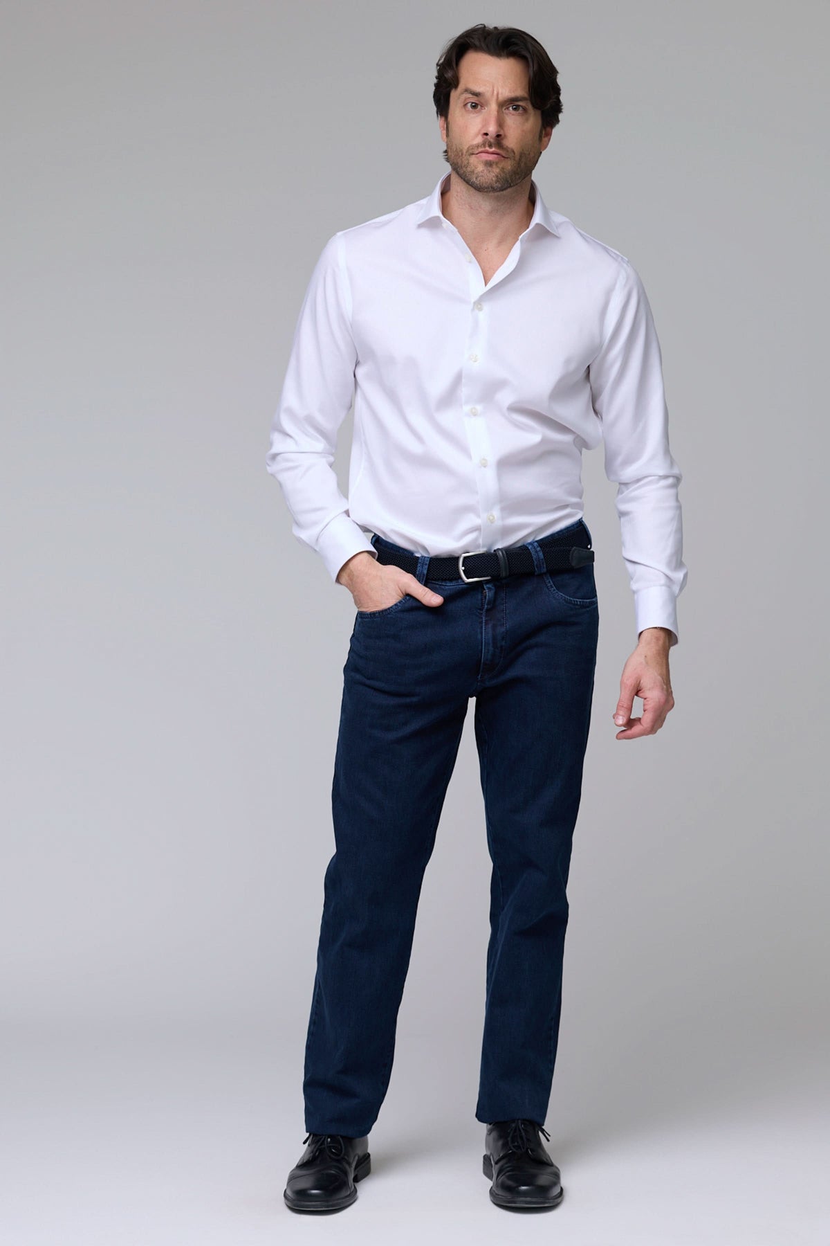Description : Ce jean à coupe droite allie confort et style intemporel. Confectionné dans un denim souple et légèrement extensible, il offre une allure moderne et soignée, parfaite pour un usage quotidien.